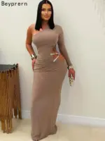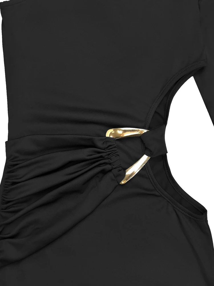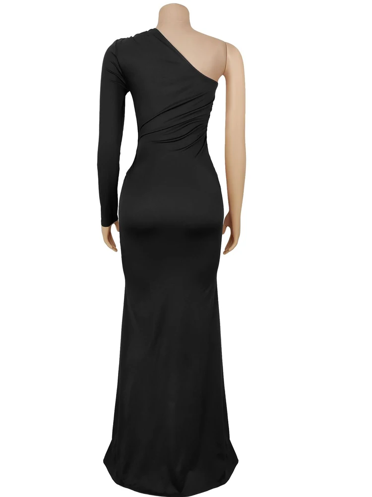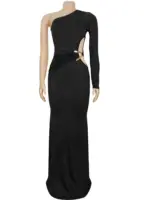 - Character: Beautiful One Sleeve Cut-Out Metal Tirm Long Maxi Dress