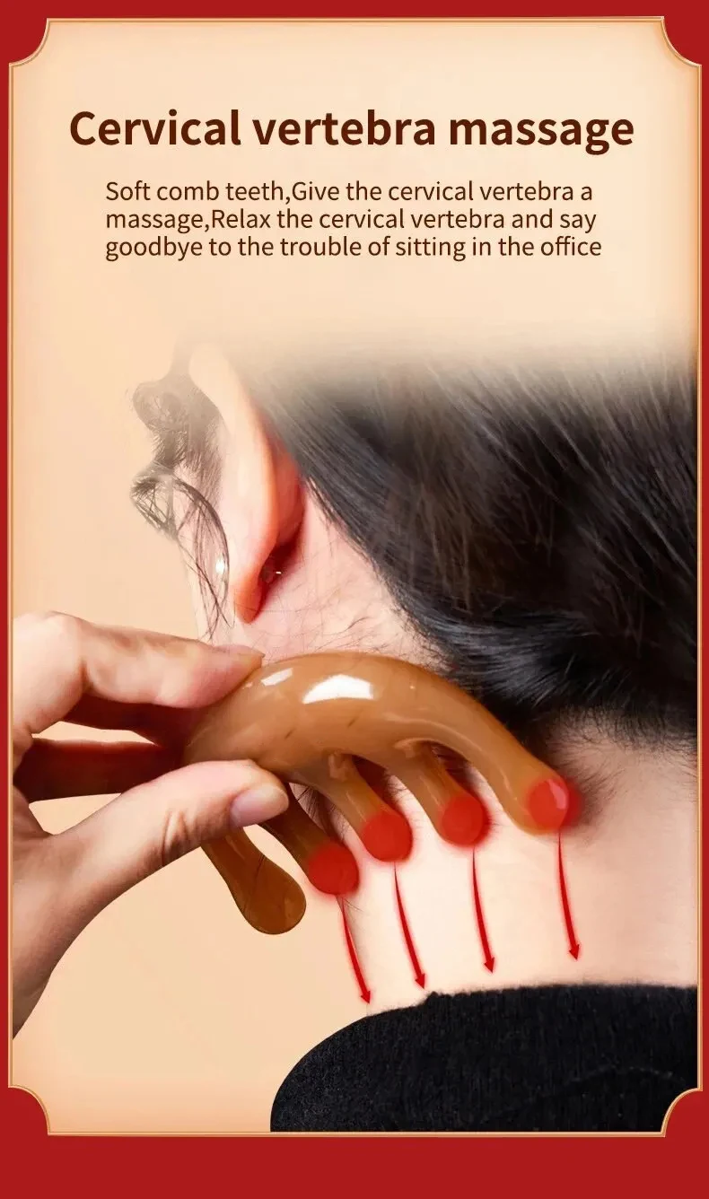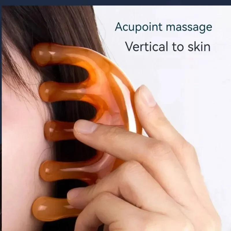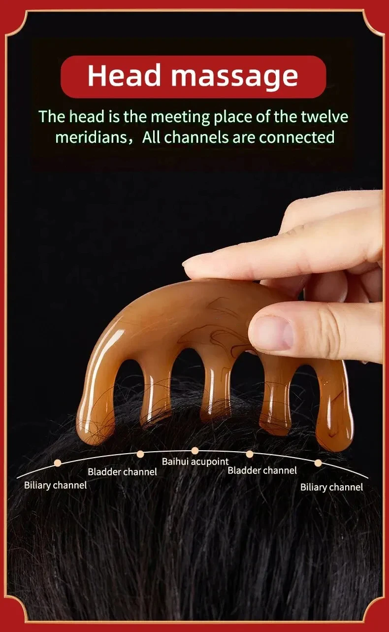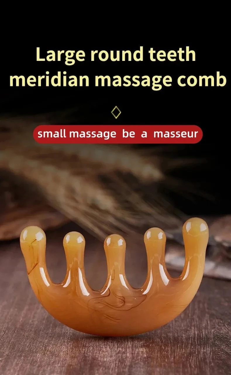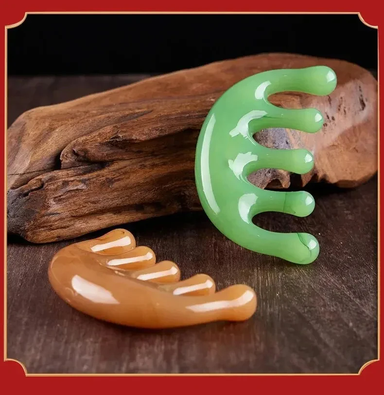 Big Teeth Head Acupoint Green 5-Tooth Meridian Blood Massage Comb Resin Large-Tooth Head Massage Tool 5-Paw Half Round Shap Comb