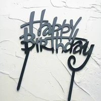 Black Gold Acrylic Happy Birthday Cake Topper Creative Cake Decoration Party Favors Supplies Cake Decorating Tools