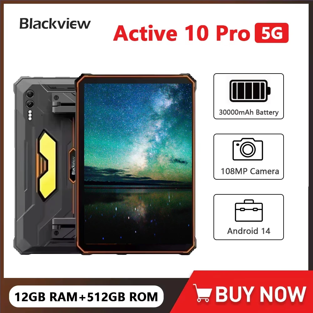 Blackview Active 10 Pro 5G Rugged Tablet 11 Inch FHD+ 30000mAh Large Battery 12GB+256GB/512GB 108MP 55W Android 14 Tablets Pad
