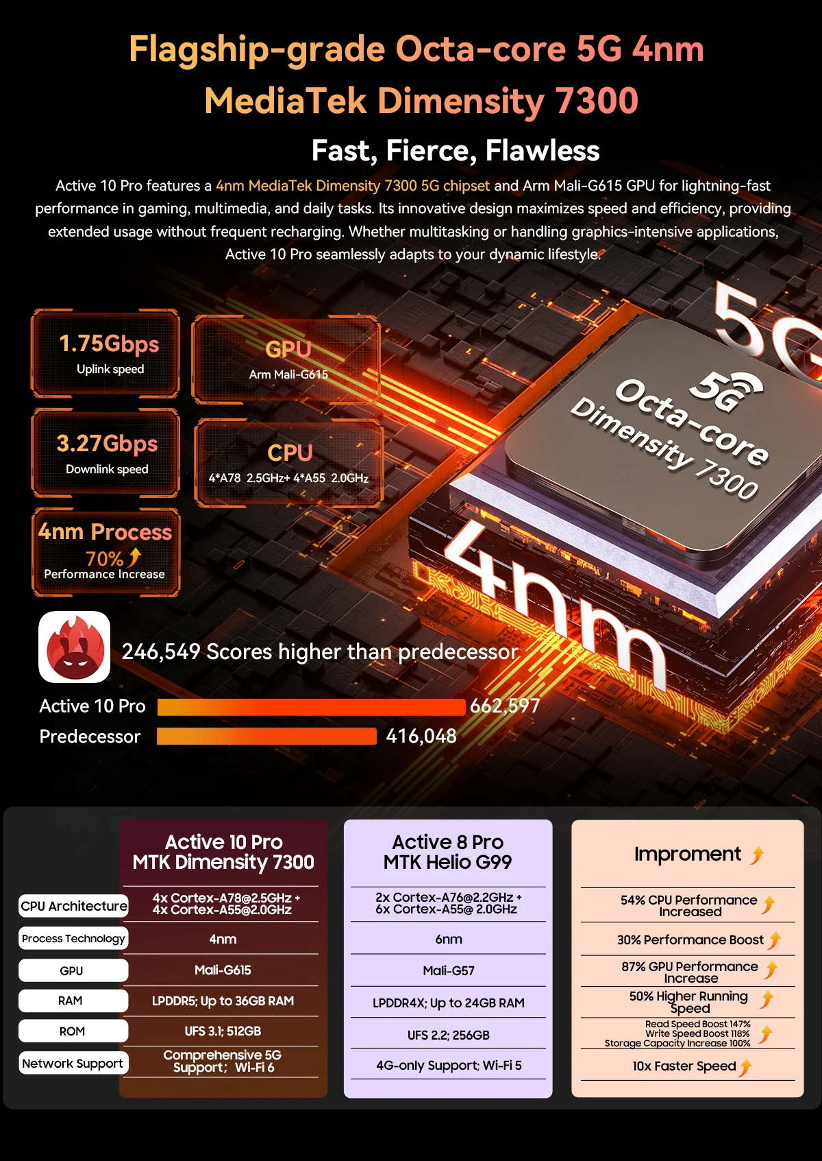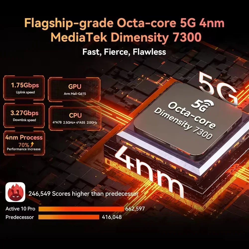 5G Flagship-grade Octa-core MediaTek Dimensity 73004*A78@2.5GHz+4*A55@2.0GHz Arm Mali-G615