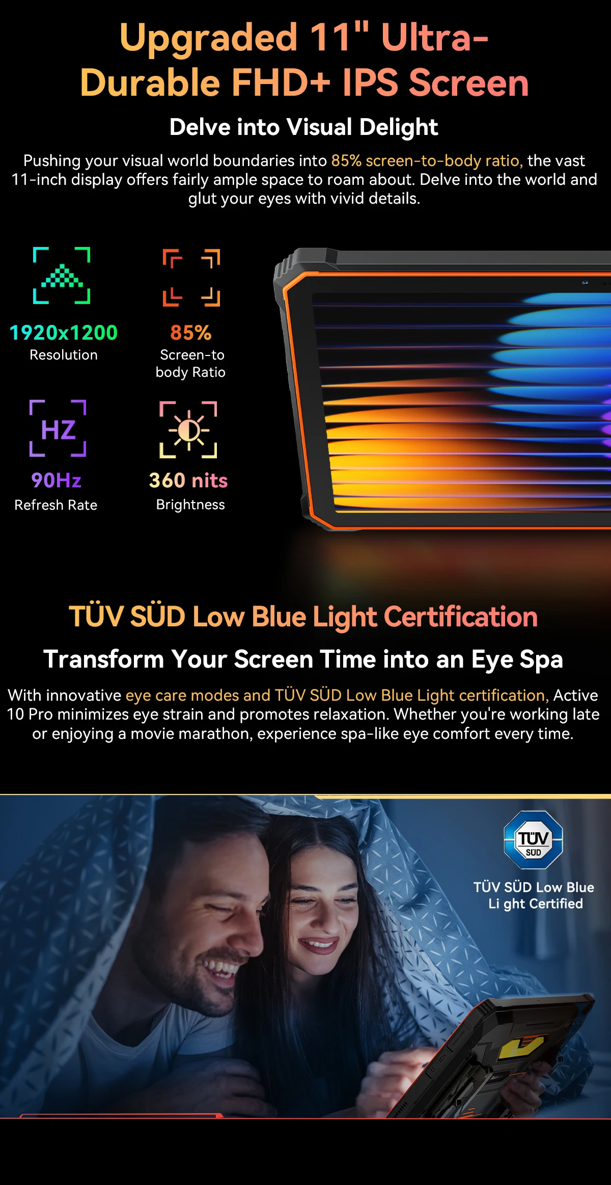 Upgraded 11″ Ultra-Durable Corning® Gorilla® Glass 5 FHD+ IPS Screen