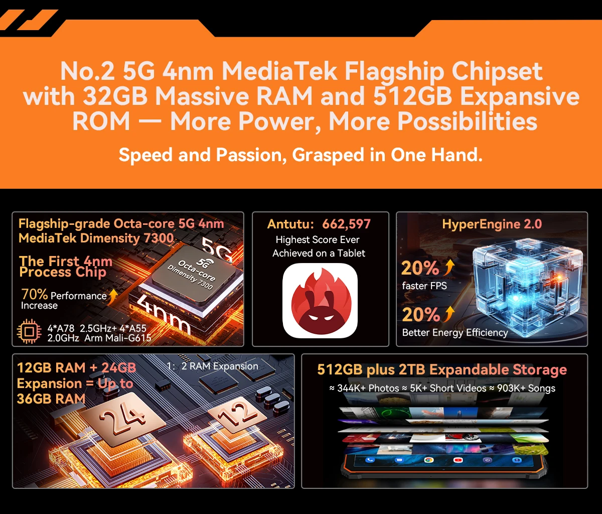 No.2 5G 4nm MediaTek Flagship Chipset with 32GB Massive RAM and 512GB Expansive ROM — More Power, More Possibilities
