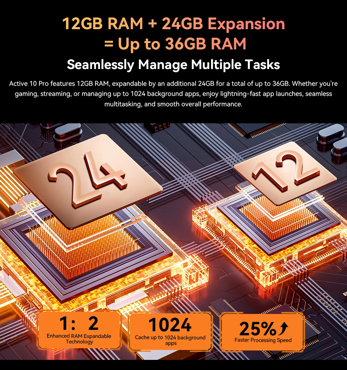 12GB RAM + 24GB Expansion=Up to 36GB RAM