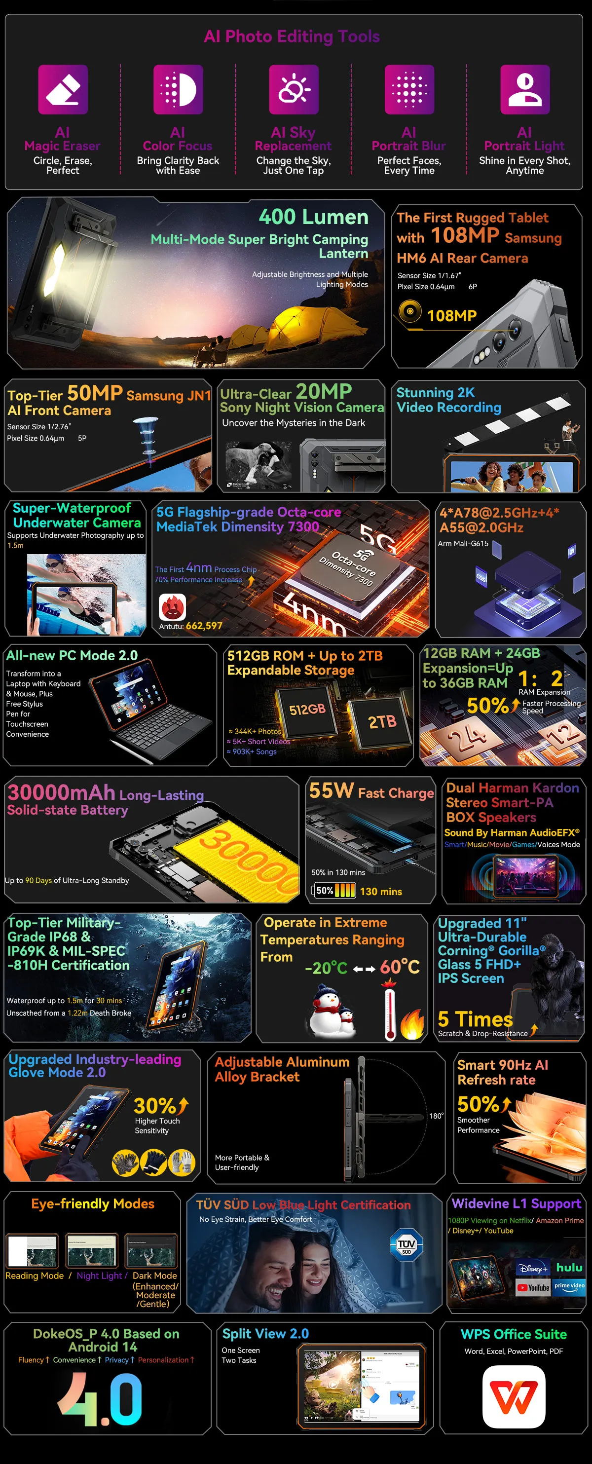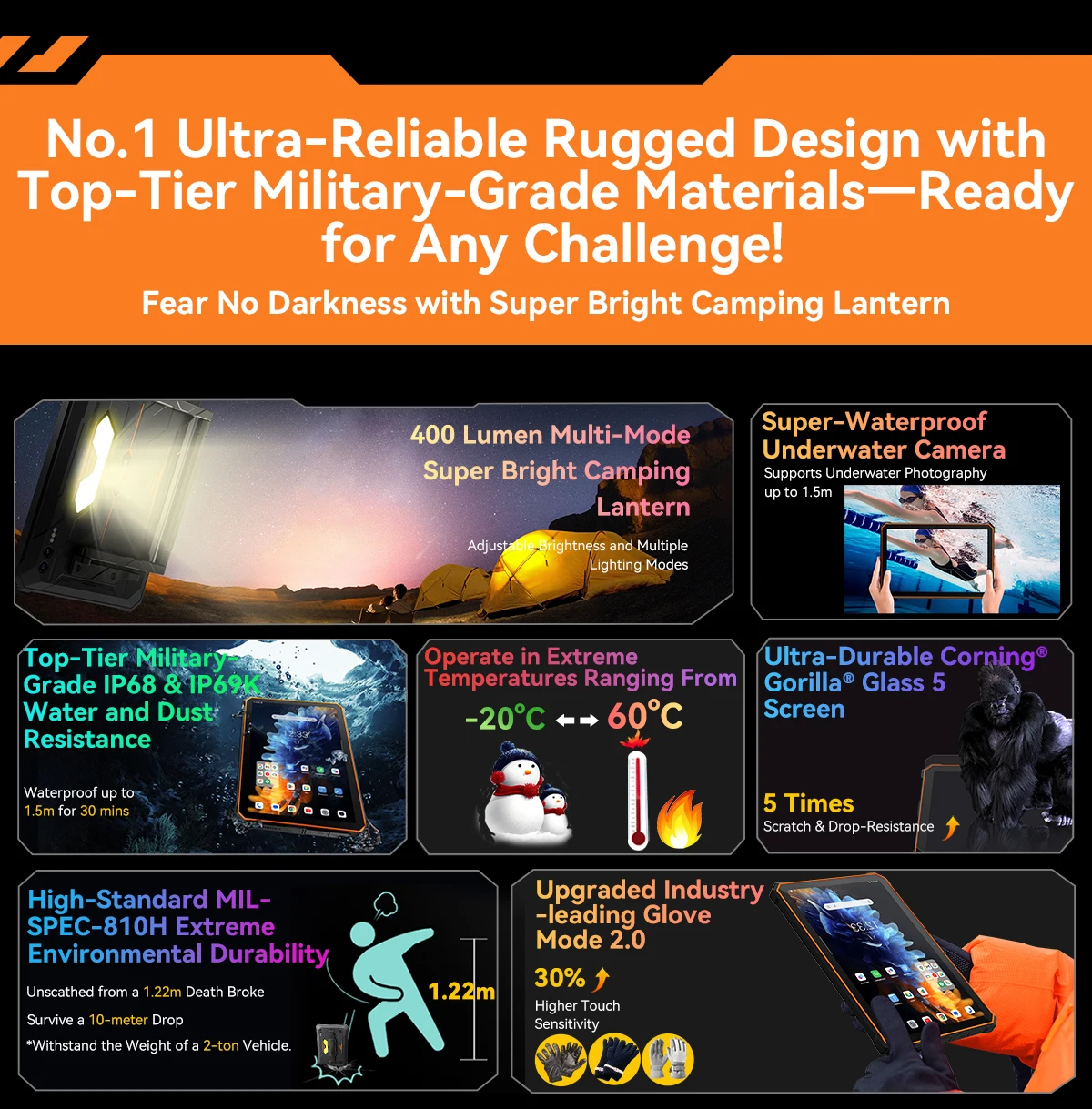The World’s 1st 5G 30,000mAh Rugged Tablet with 400lm Camping LightTough and High-End Pro, 5G Comfortable Rugged Lifestyle ProMax!