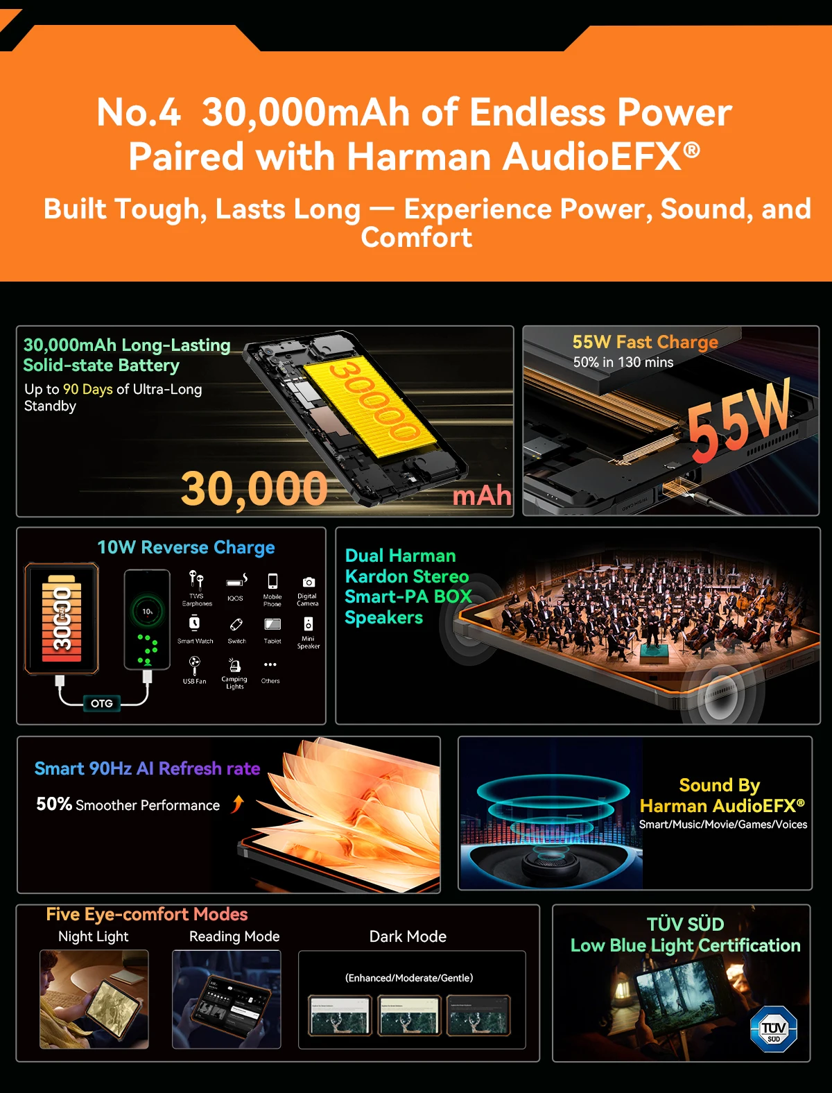 No.4 30,000mAh of Endless Power, Paired with Harman AudioEFX®
