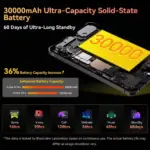30,000mAh Long-Lasting Solid-state BatteryUp to 90 Days of Ultra-Long Standby