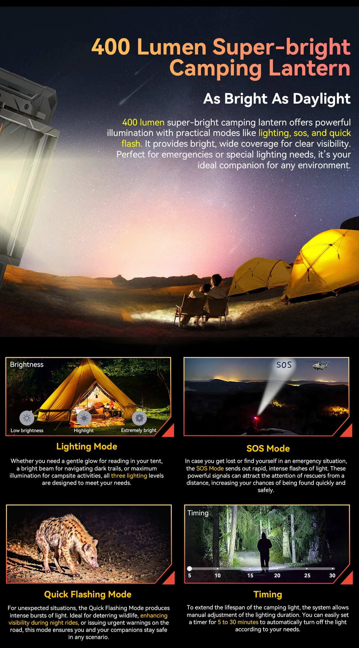 400 Lumen Multi-Mode Super Bright Camping Lantern