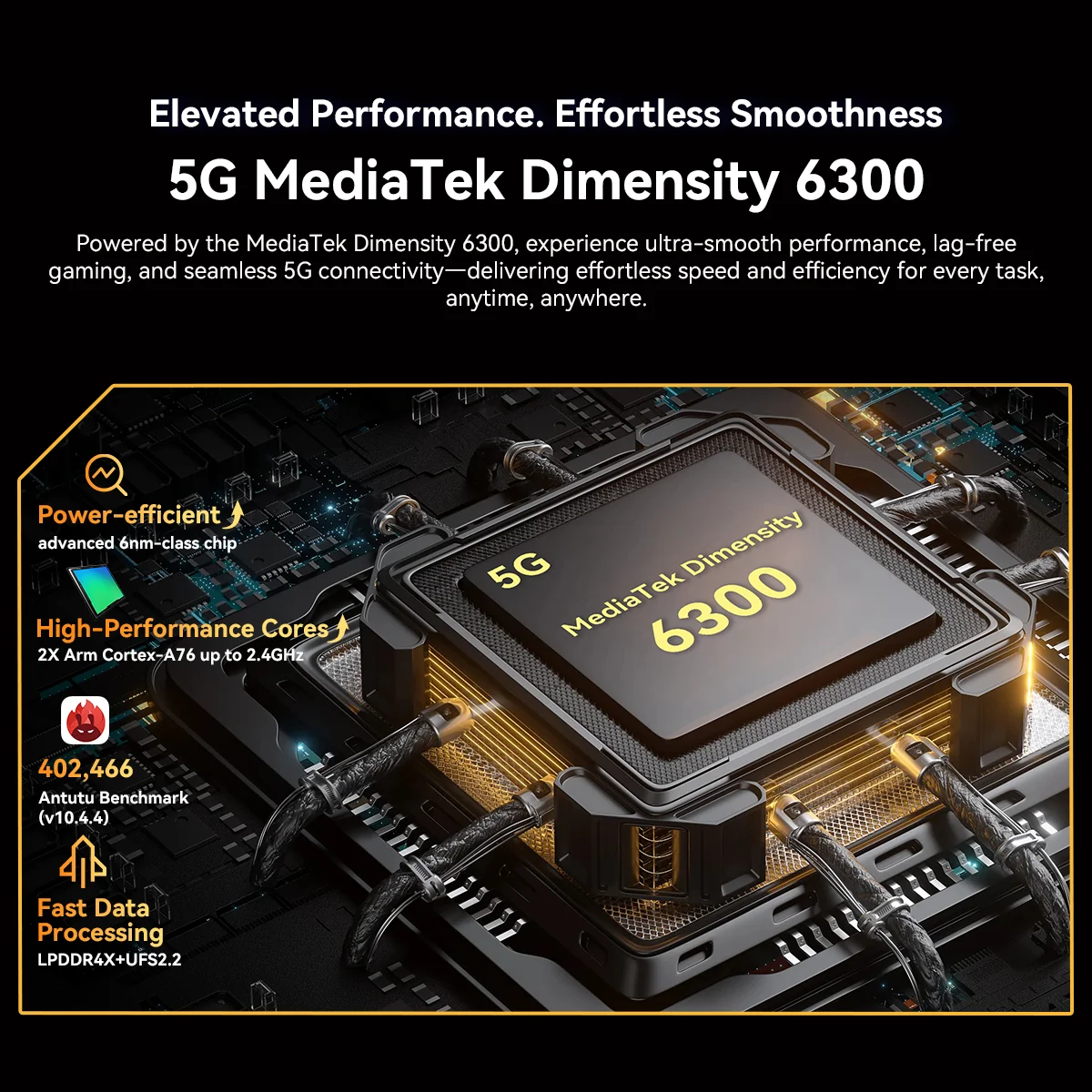 CPU : 5G MediaTek Dimensity 6300; Up to 2.4GHZ