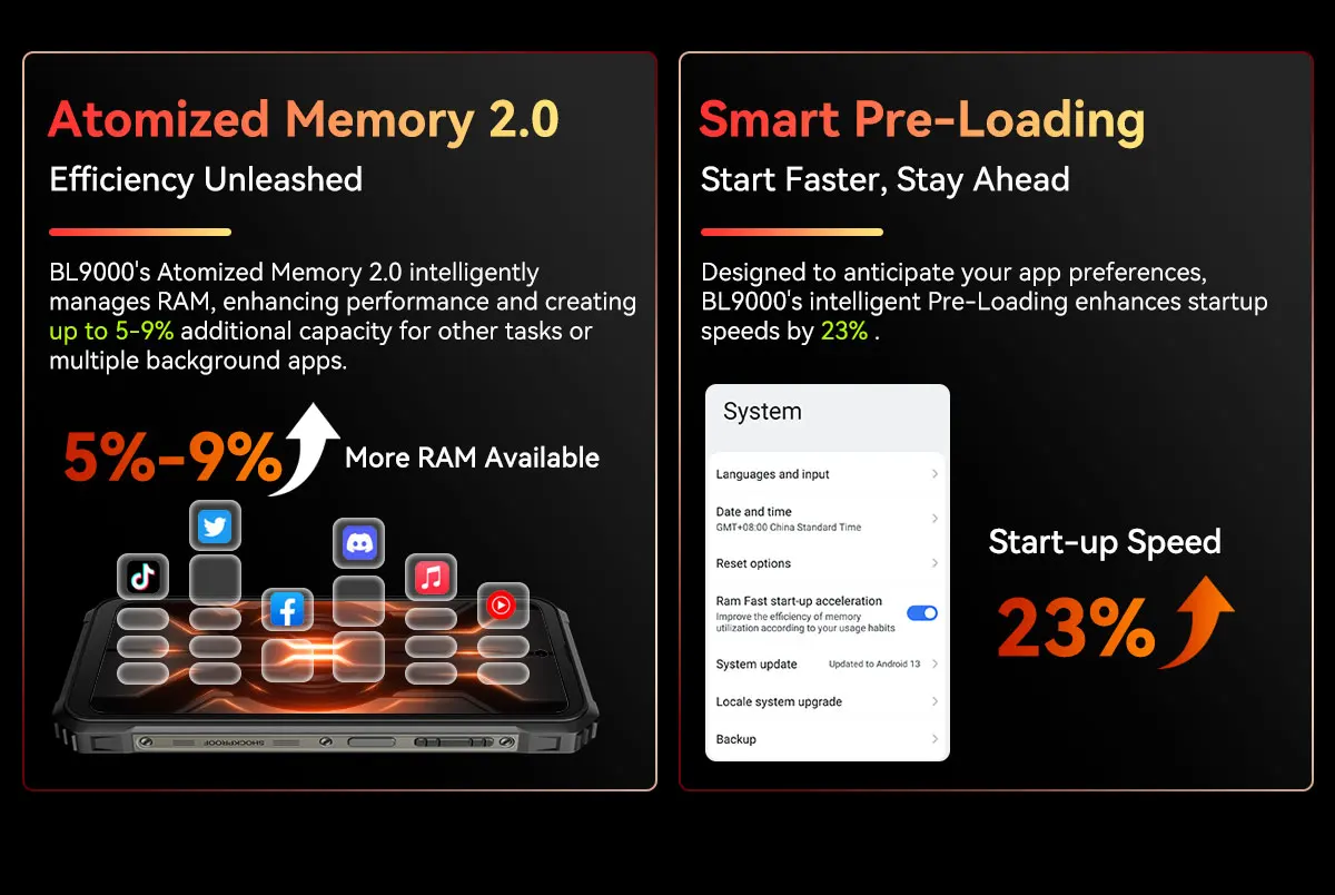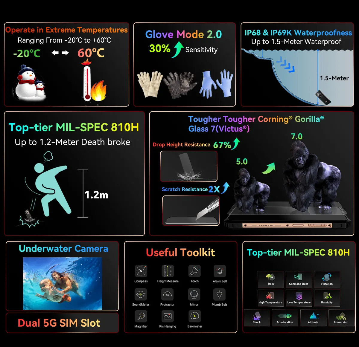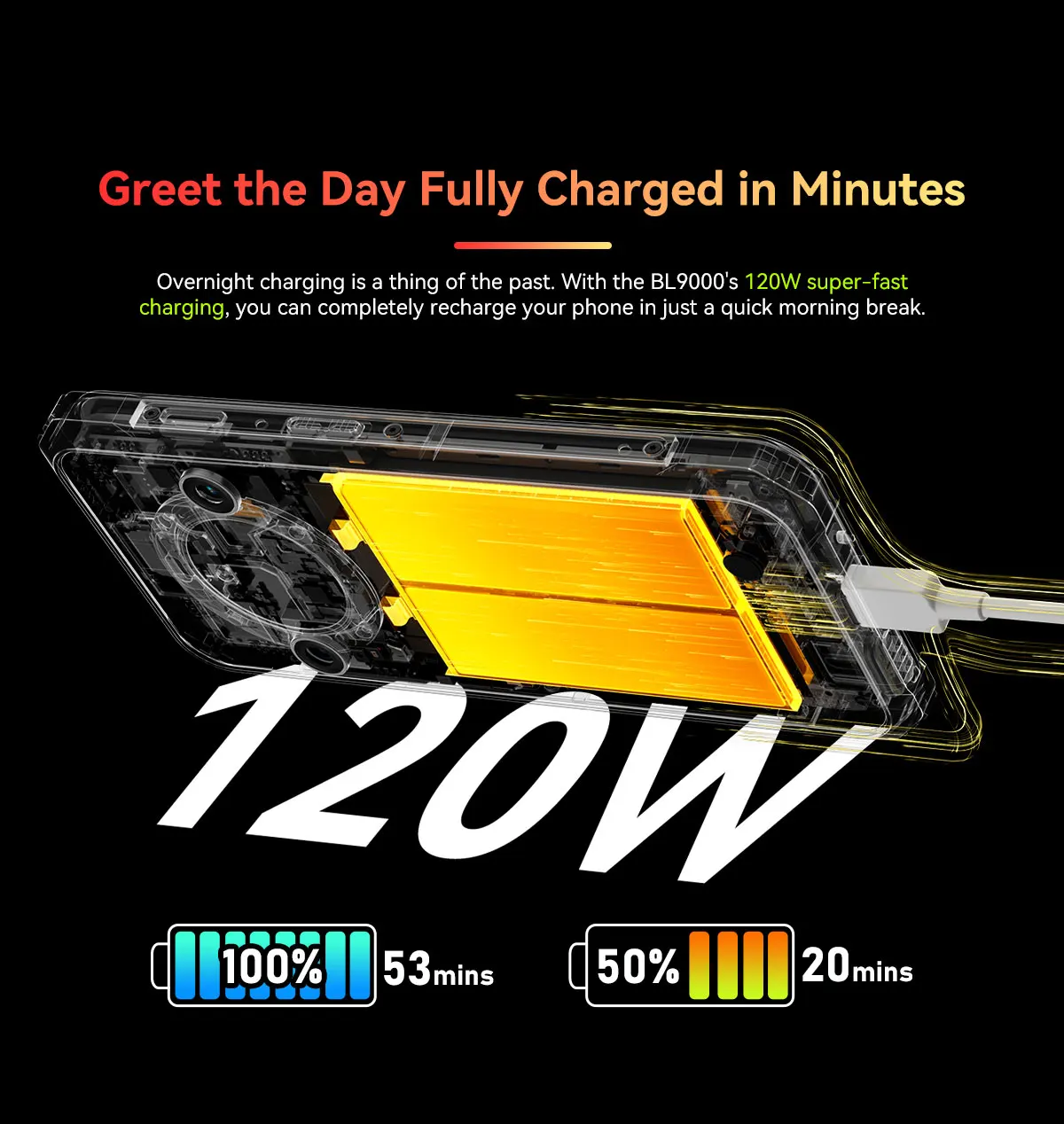 Blackview BL9000 Rugged Phone 24GB RAM+512GB ROM Global Version Telephone Portable 8800mAh 120W Fast Charge Android 5G Smartphon