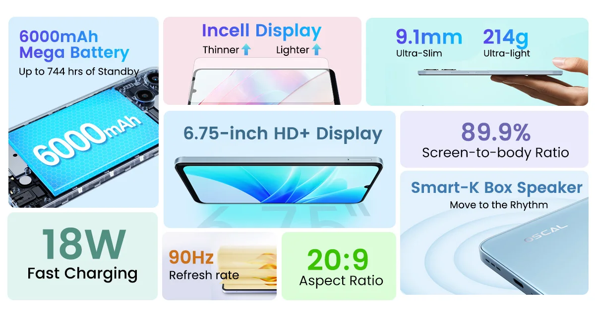 Blackview OSCAL MODERN 8 Smartphone 6.75inch Display 8GB+128GB/256GB,50MP Rear Camera Mobile Phone 18W Fast Charging 6000mAh