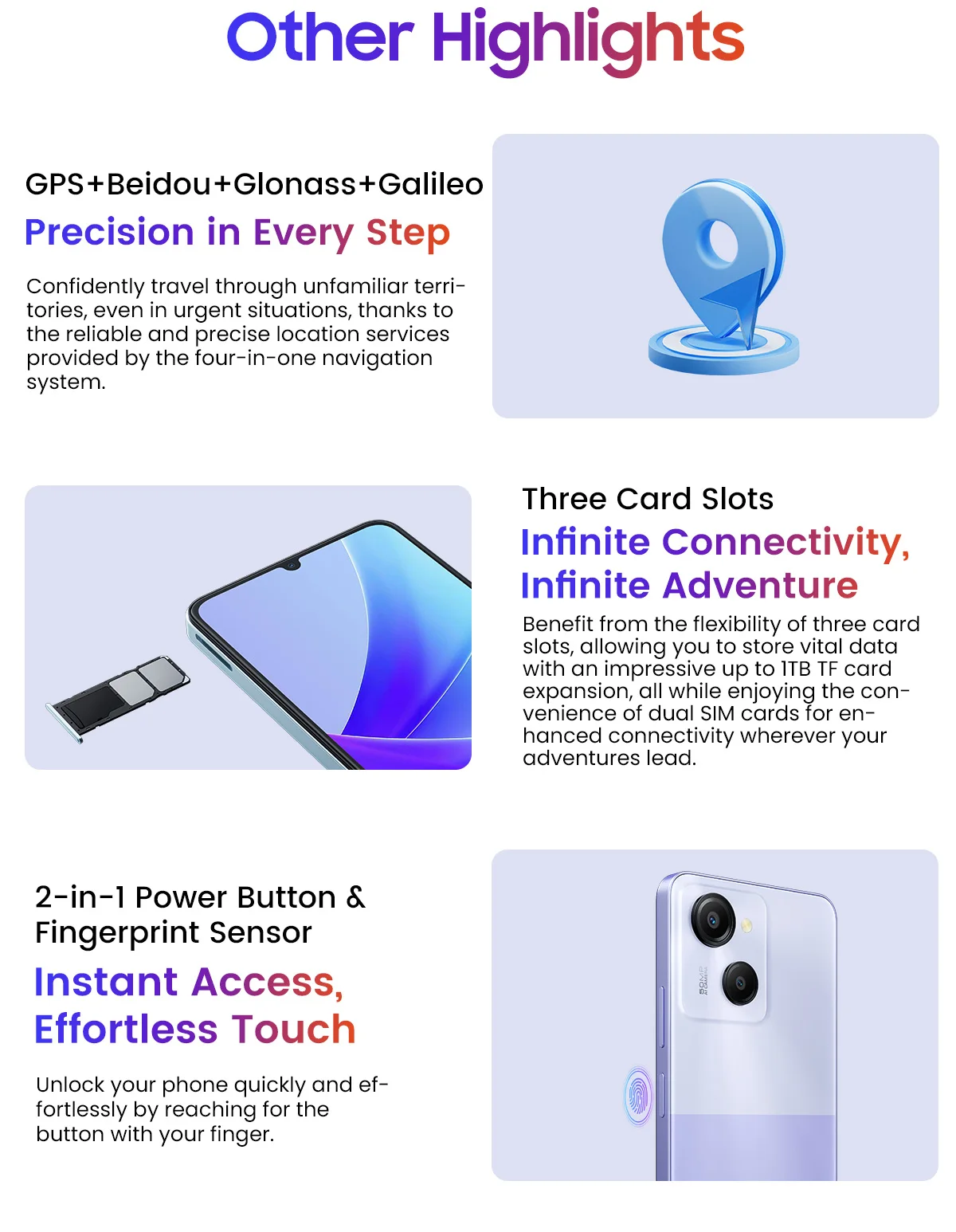 Card Slots:Three(2*SIMs+1*TF card)