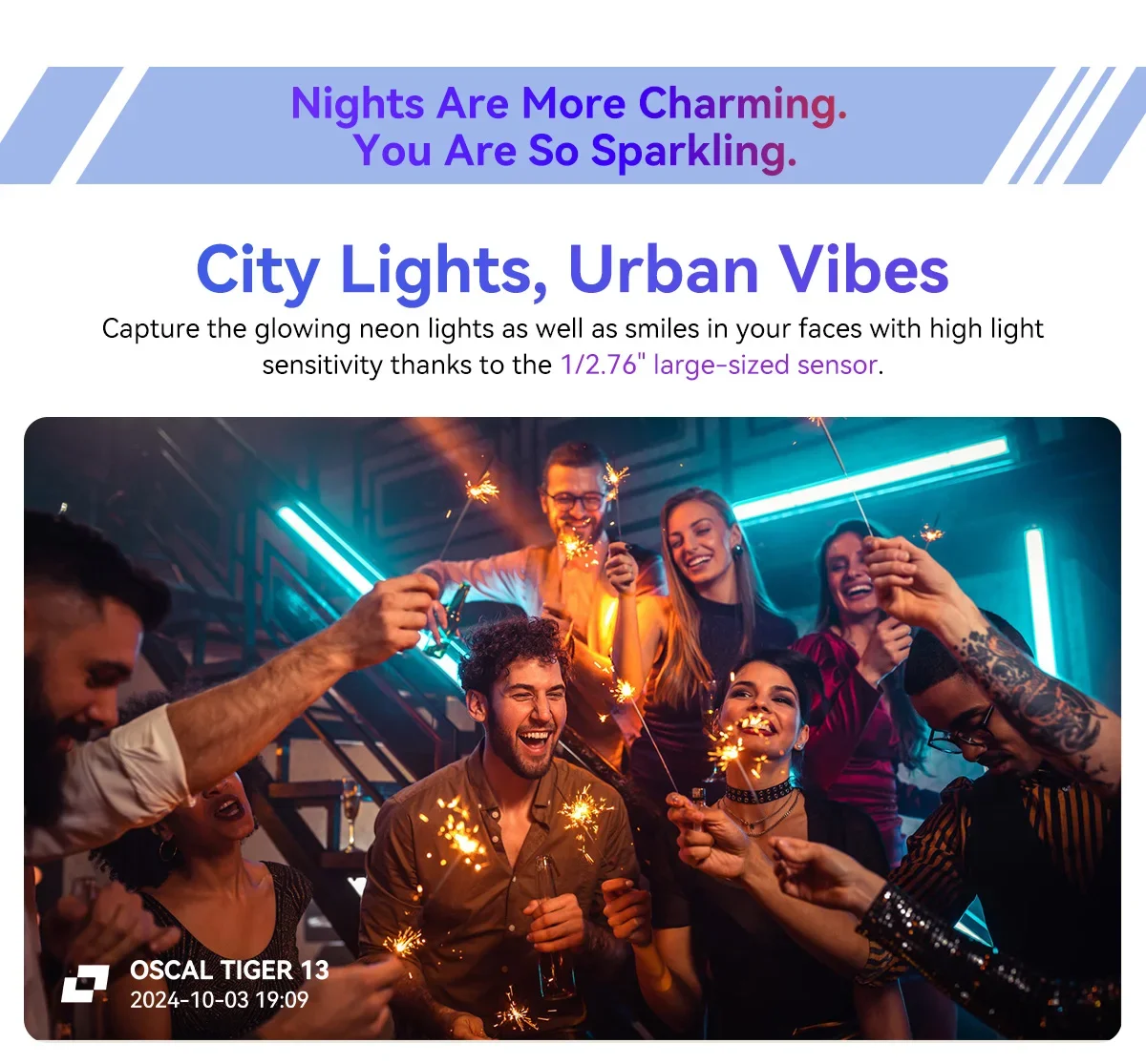 Drawing inspiration from the Tyndall effect, where a light beam made visible as it enters a window, OSCAL TIGER 13 features a starburst effect on its back, coming to life like the morning sun scattered on the frost and dew. Its flat frames and round cornerscreate a silhouette that epitomizes simplicity, while ensuring a comfortable grip in the palm of your hand.