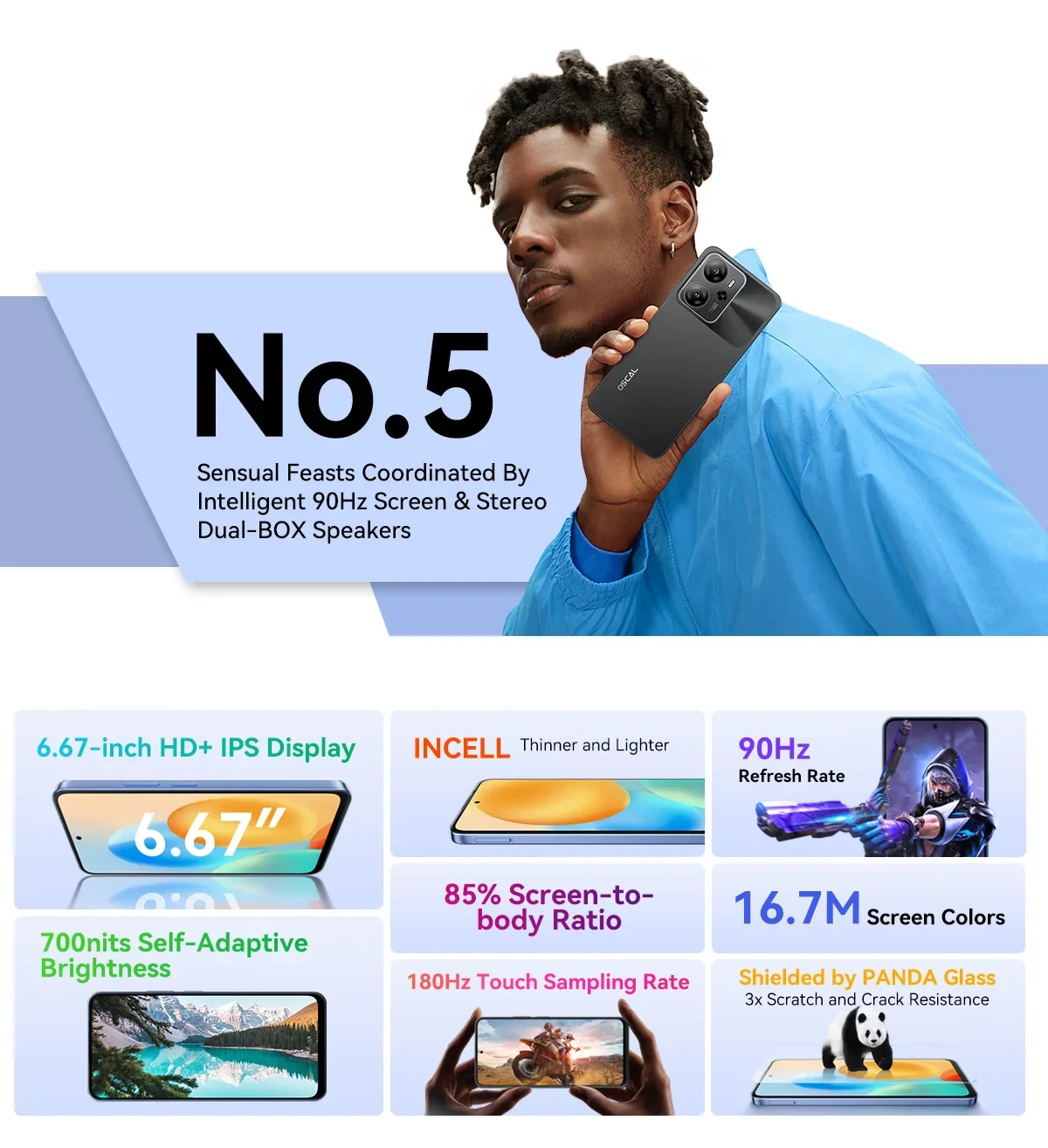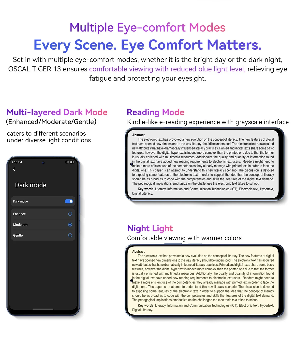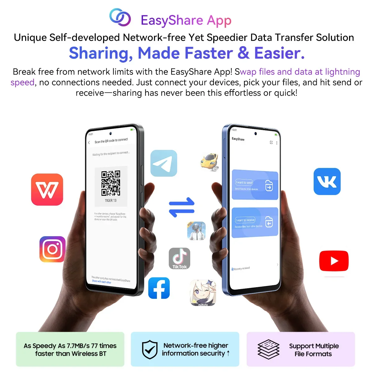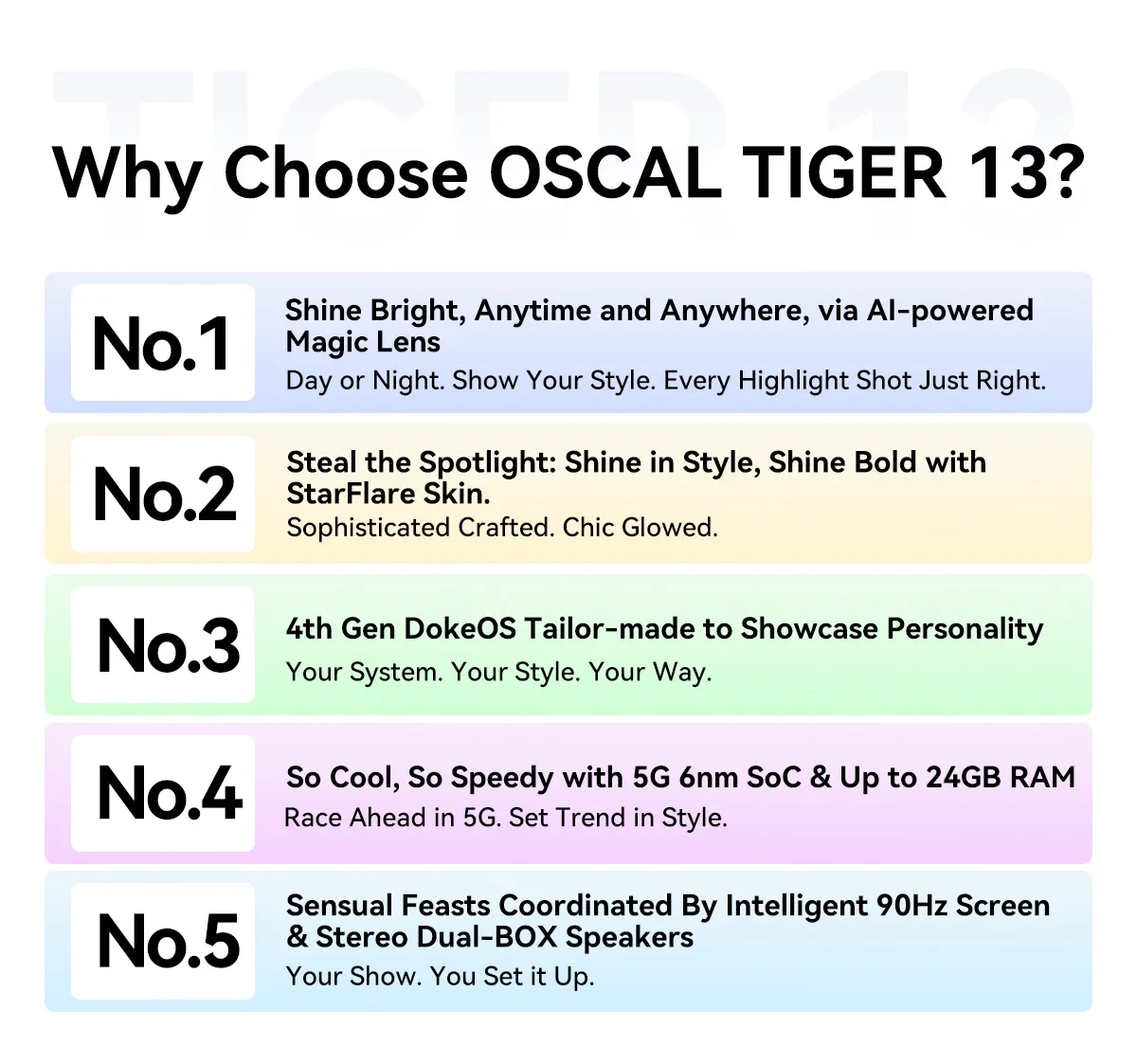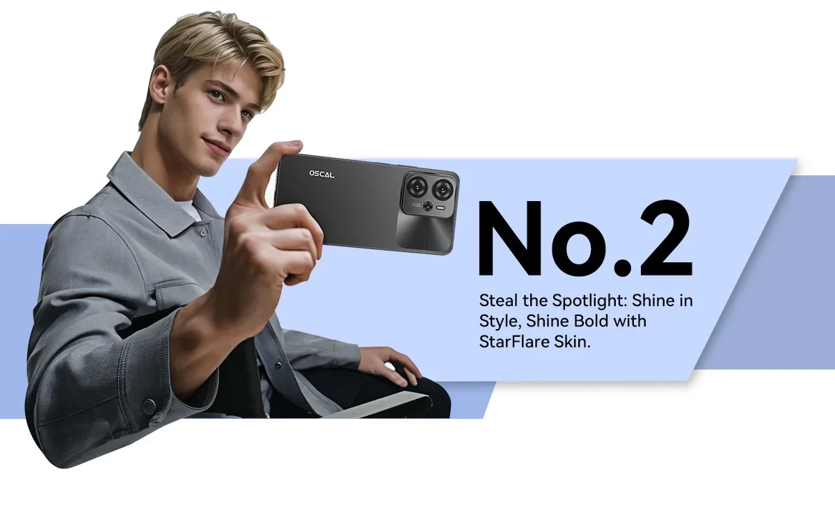 Featuring an 8MP Samsung self-facing AI camera, OSCAL TIGER 13 captures crystal clear selfies with all your skin tones naturally restored.