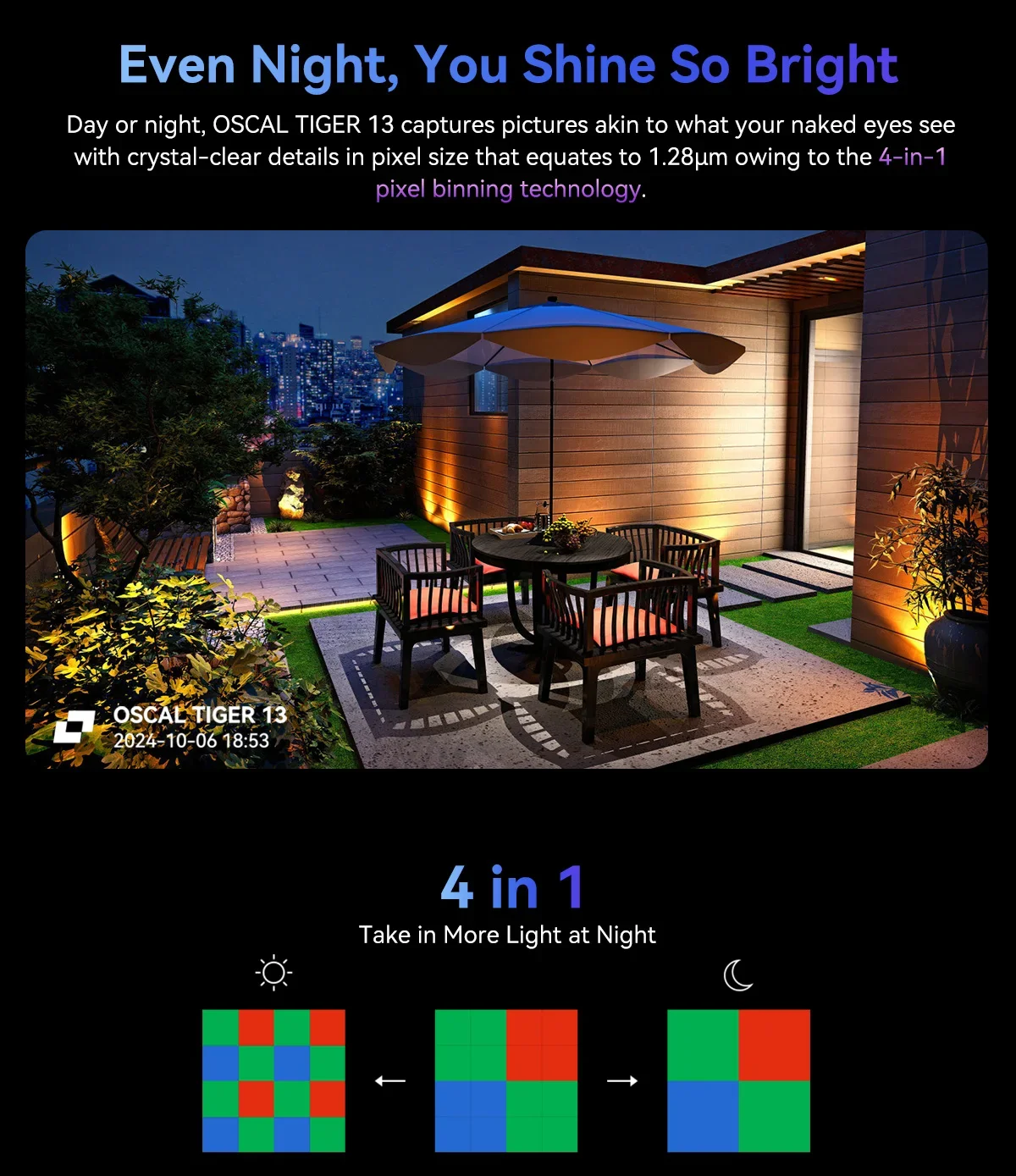 4-in-1 Pixel Binning technology Higher Light Sensitivity↑