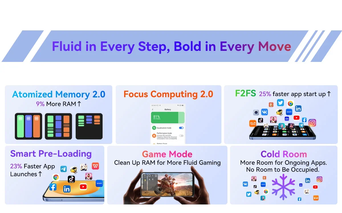 Up to 24GB=8GB+16GB RAM35% Faster App Start-up↑