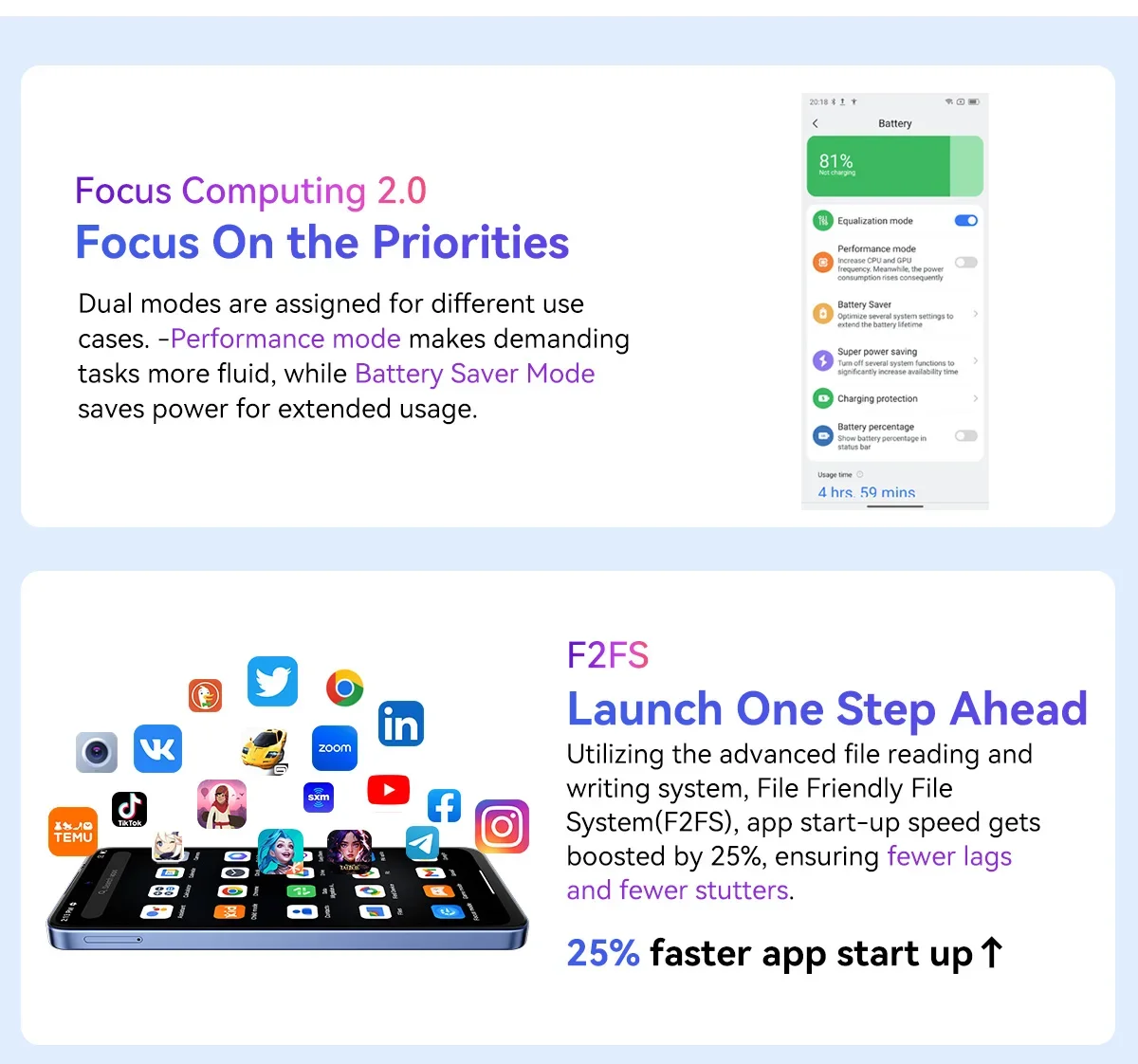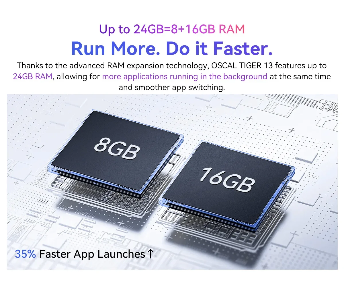 Up to 24GB=8GB+16GB RAM 35% Faster App Launches↑