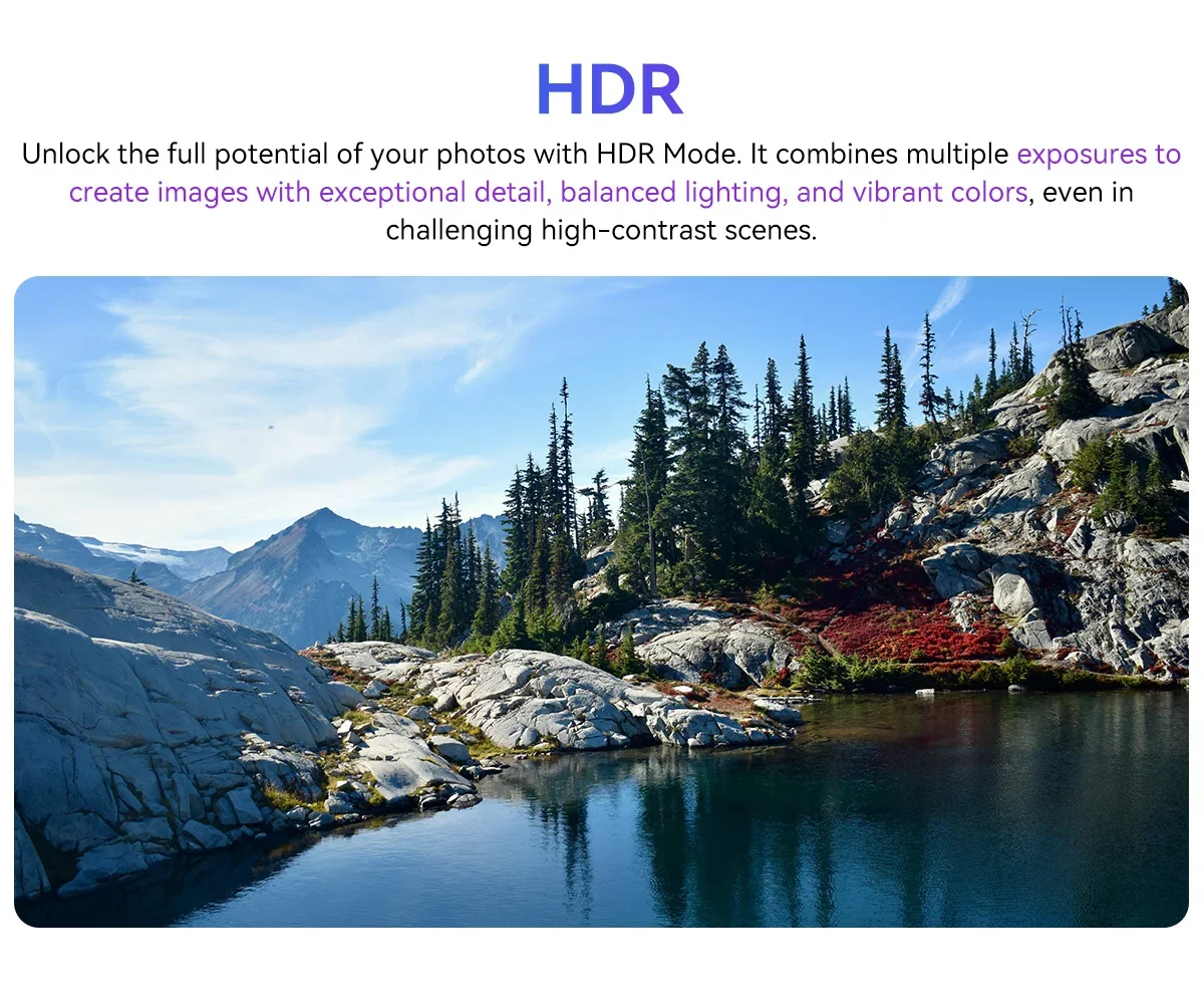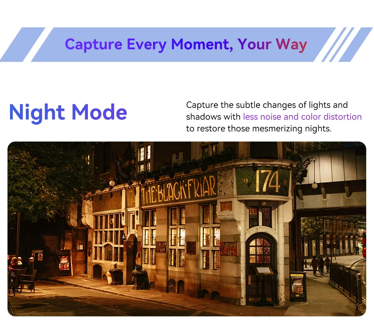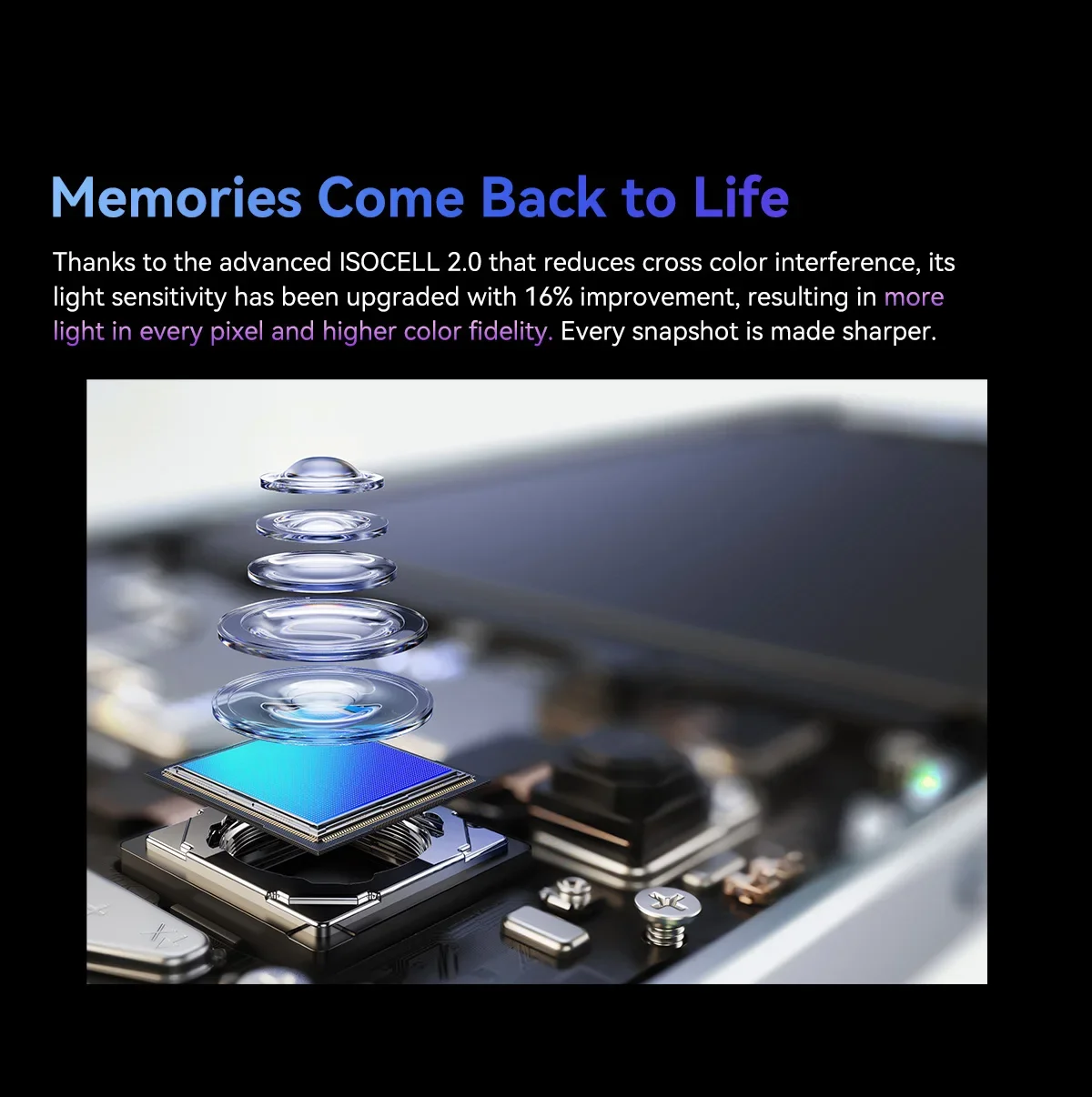 50MP Samsung® JN1 AI Camera1/2.76″5P f/1.8 Aperture