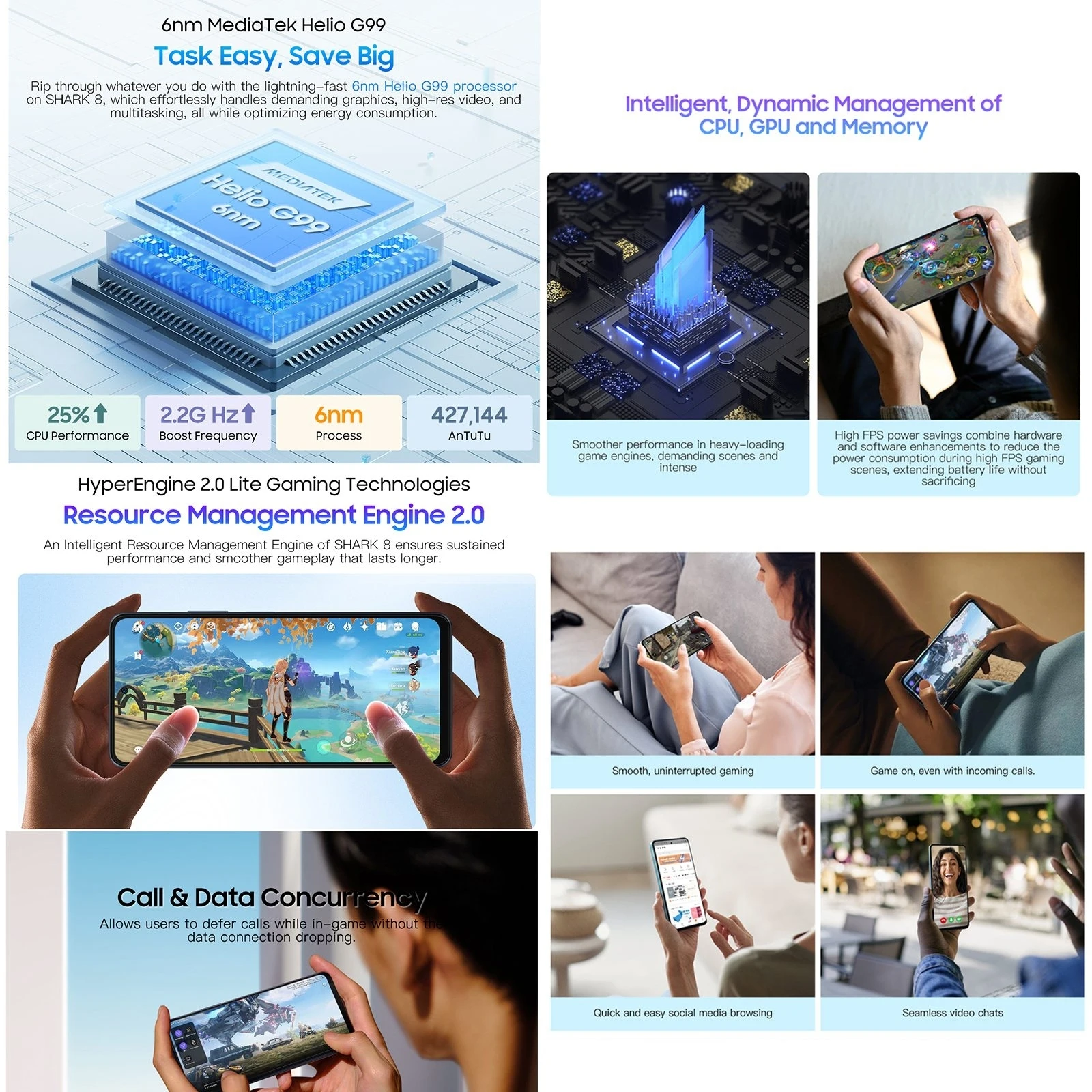 1. CPU: MTK6789 Helio G99 6nm, octa-core, 2 x A76 2.2GHz + 6 x A55 2.0GHz