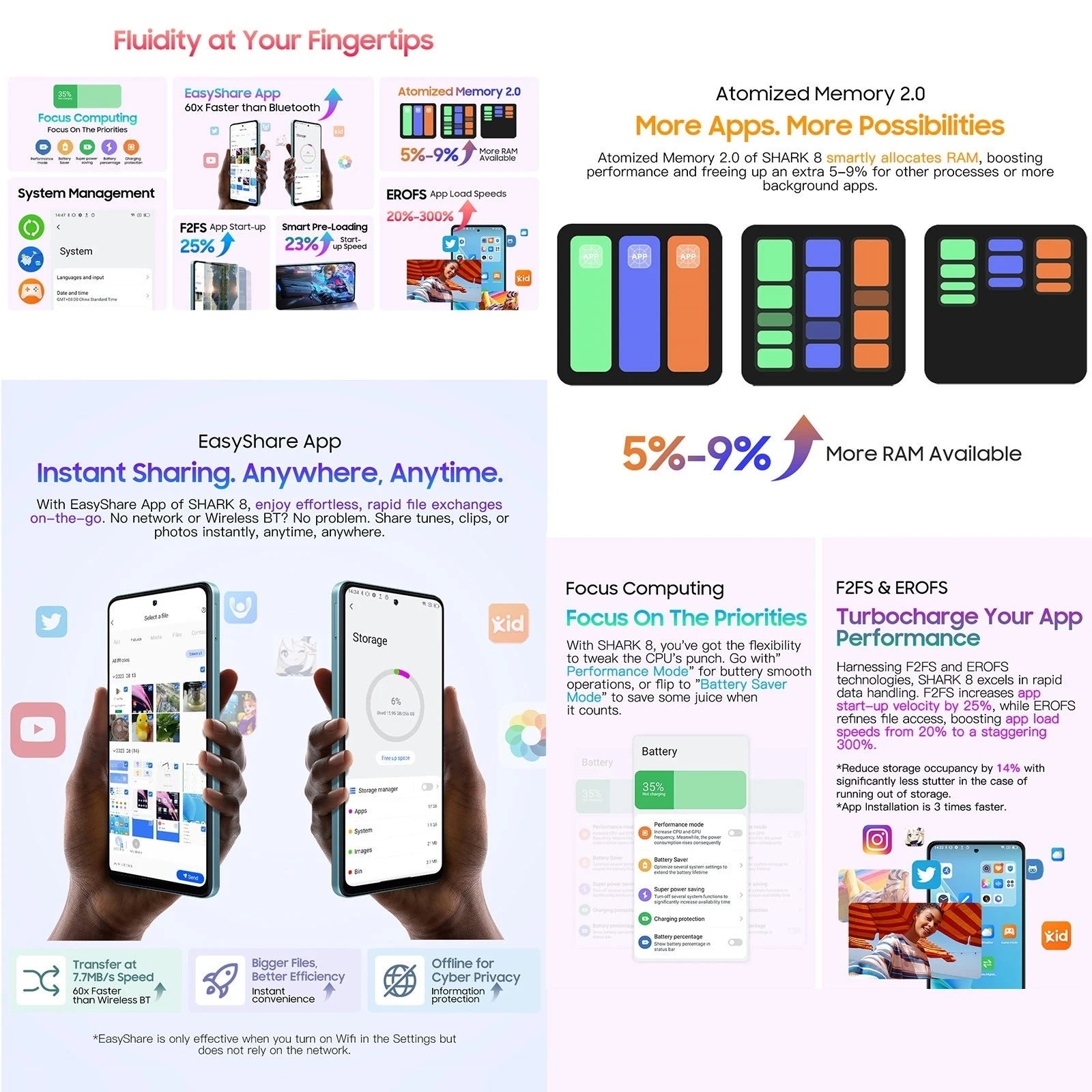 3. Memory: 8GB(+8GB virtual up to 16GB) RAM+128GB ROM / 8GB(+8GB virtual up to 16GB) RAM+256GB ROM(optional)