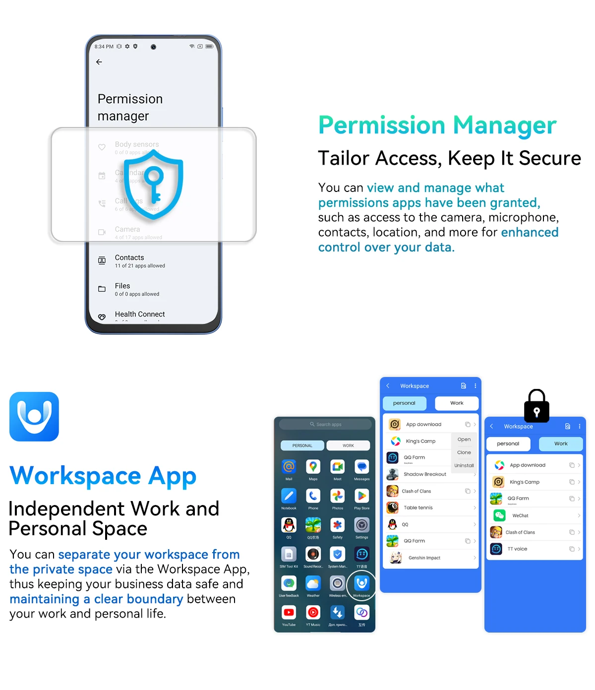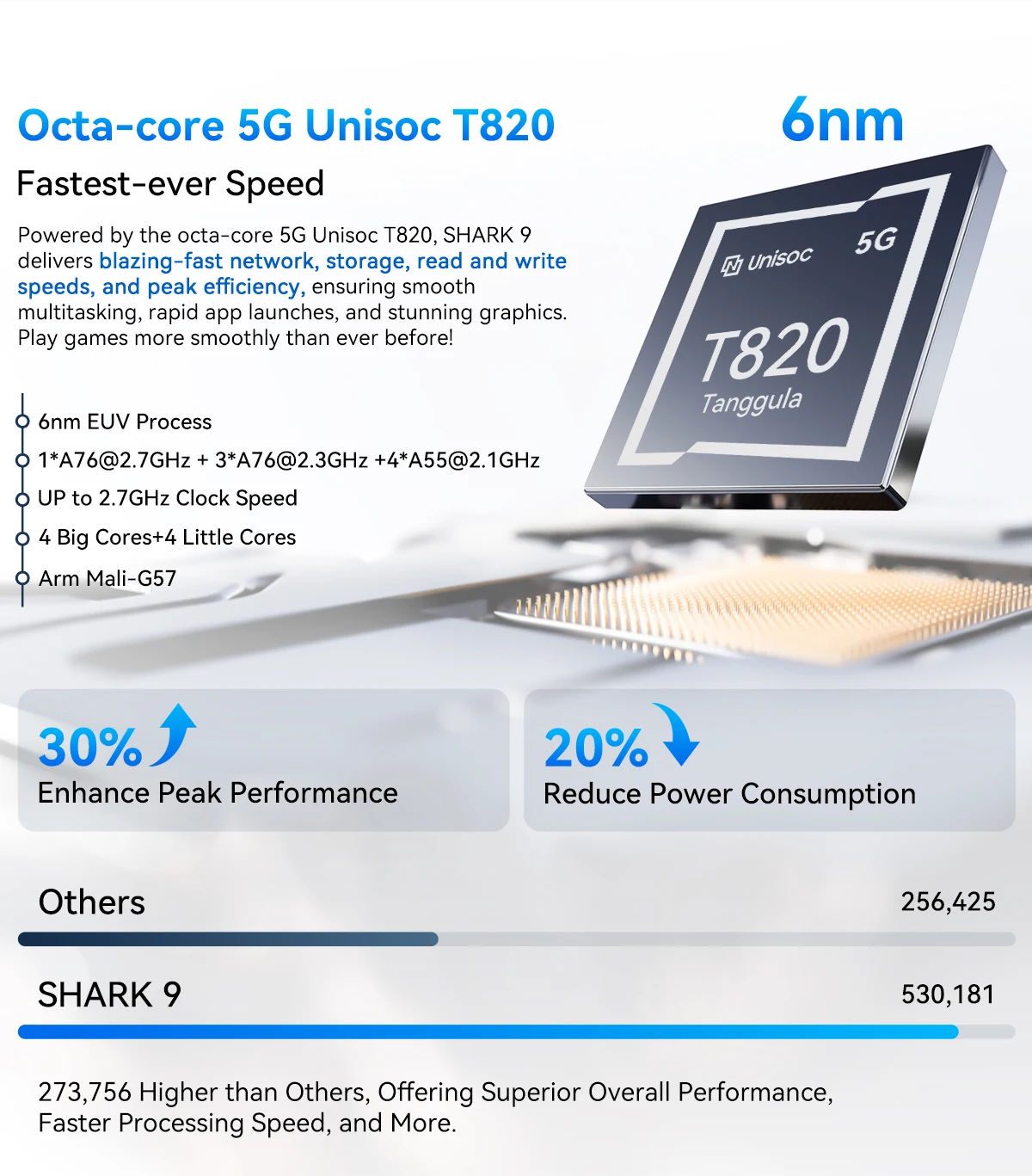 CPU :UMS9620S, Octa core, 1*A76@2.7GHz + 3*A76@2.3GHz +4*A55@2.1GHz