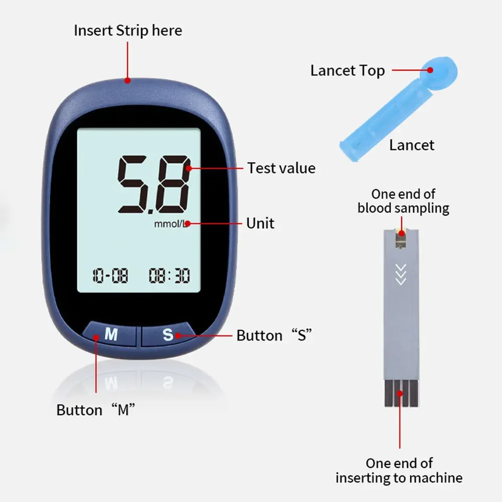 Blood Glucose Meter Glucometer and Test Strips Needles Sugar Monitor Diabetes Tester Home Medical Device Kit Health Care Tools