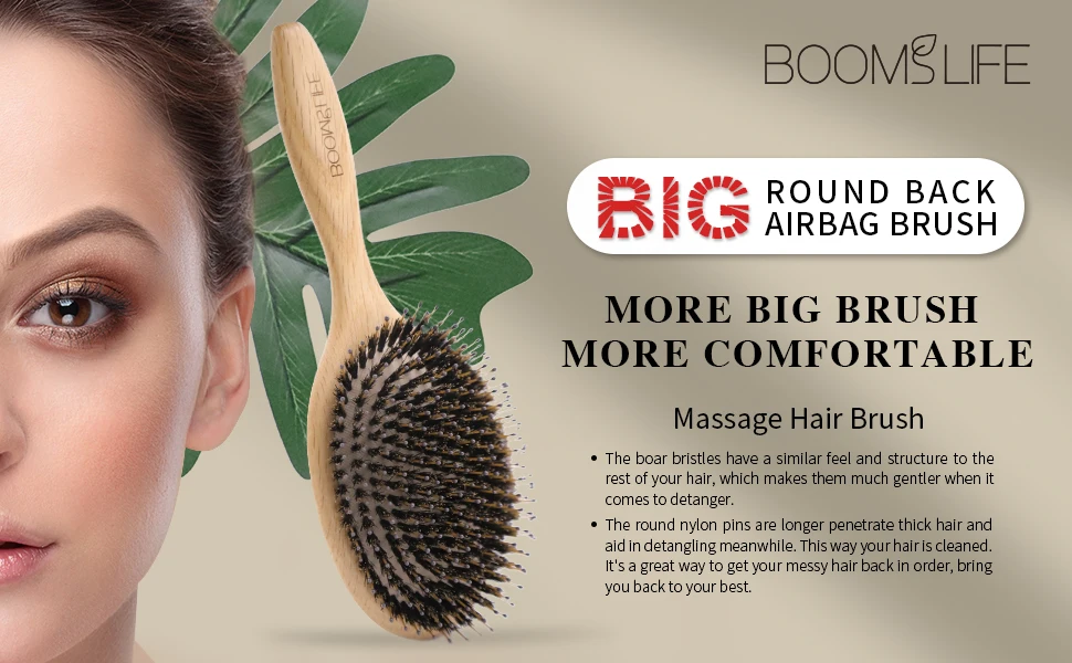 Boar Bristle Hair Brush Peine OAK Wood Comb for Women Hair Styling Scalp Massage Hairbrush Salon De Beaute Barber Accessories