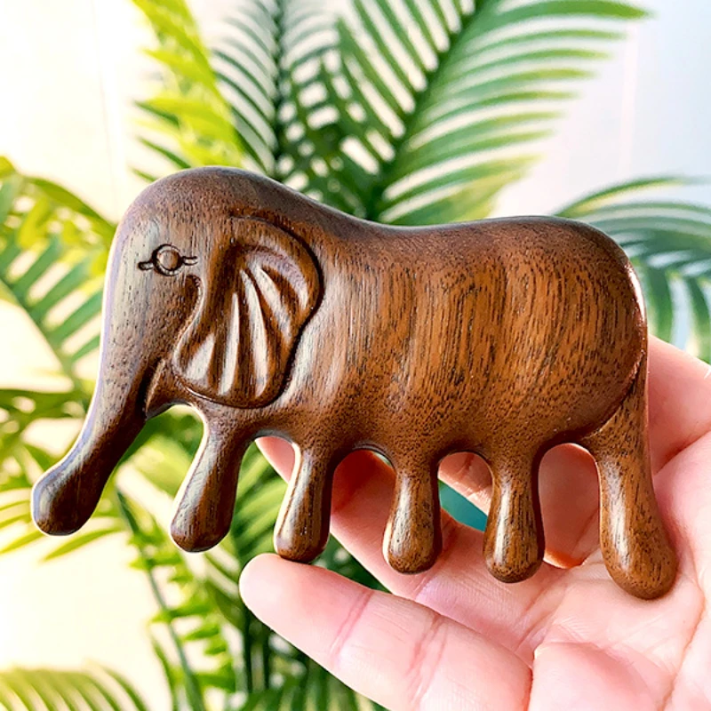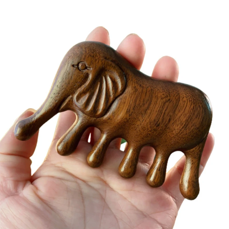 Body Meridian Massage Comb Sandalwood Elephant Shaped wide-toothed Comb Acupuncture Therapy Anti-static Smooth guasha Comb
