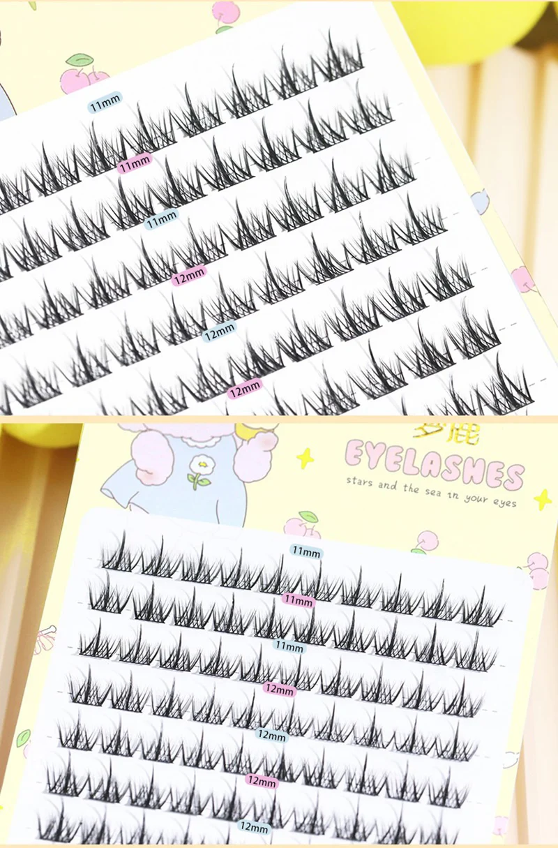 ★How to apply lash clusters: 1. Apply the cluster lash glue to your natural lashes and wait about 30 seconds. 2. Gently take lashes off the strip by grab them at the root. 3. Then apply the cluster lashes underneath your natural eyelashes, away 2-3mm from your eyelid.