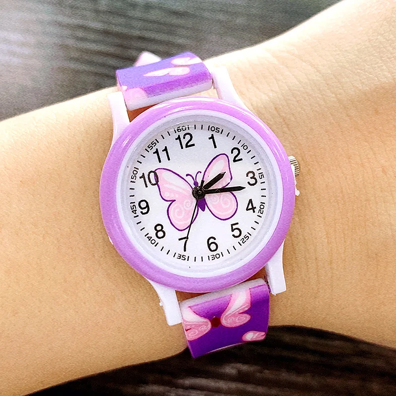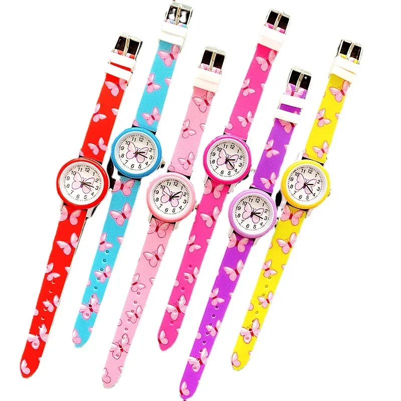 Butterfly Printing Lovely Girls Watches Silicone Candy Jelly Quartz Watches for Kids Children Girls Students Party Gifts Clock