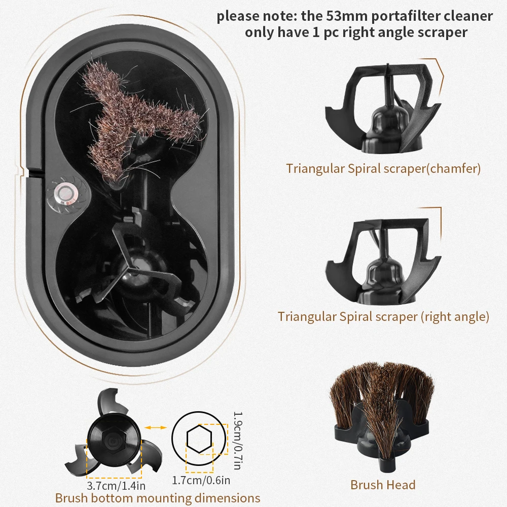 Electrci portafilter cleaner fit for 53mm only have 1 pc right angle scraper