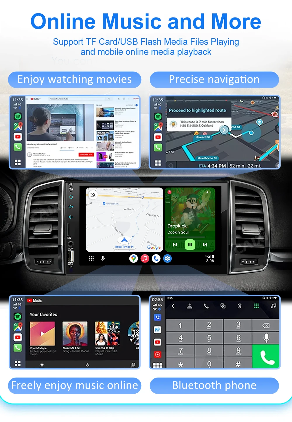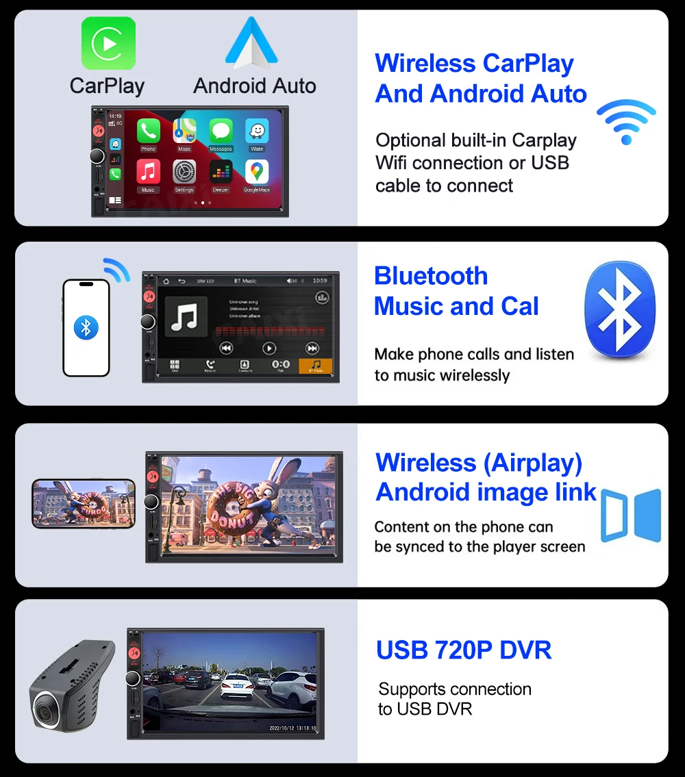 – Support bluetooth audio music.