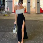 Be the first to review “Candyhot Elegant Sexy Strapless Slit Bodycon Maxi Dress Fur Patchwork Skinny Slim Long Dresses Evening Clubwear Women Vestido”