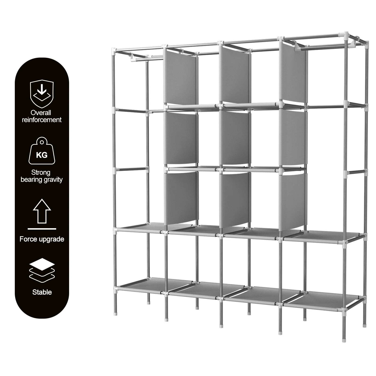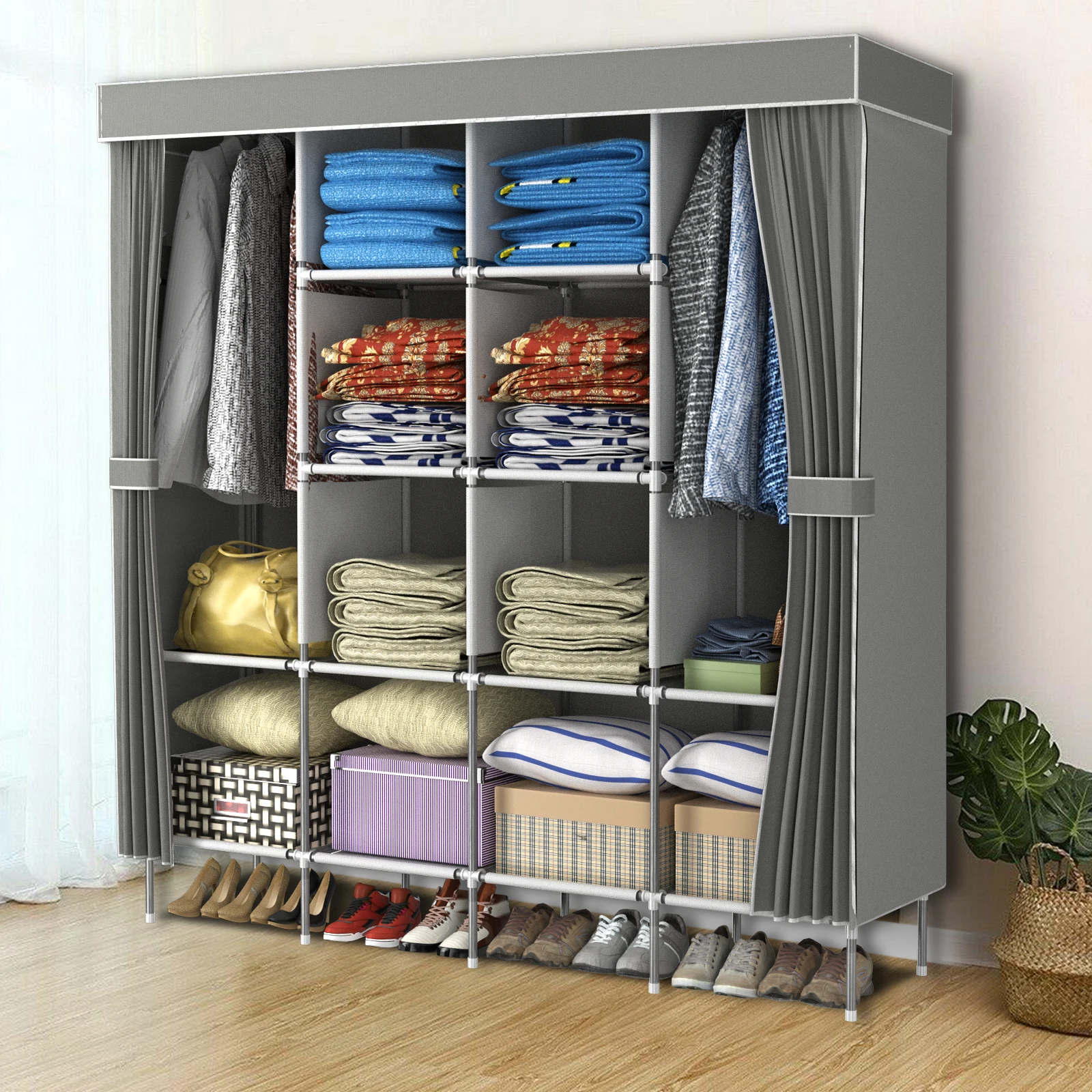 4 Columns and 12 Compartments:Â Featuring a 4-column structure with 12 compartments, this fabric wardrobe is versatile enough to meet various storage needs.