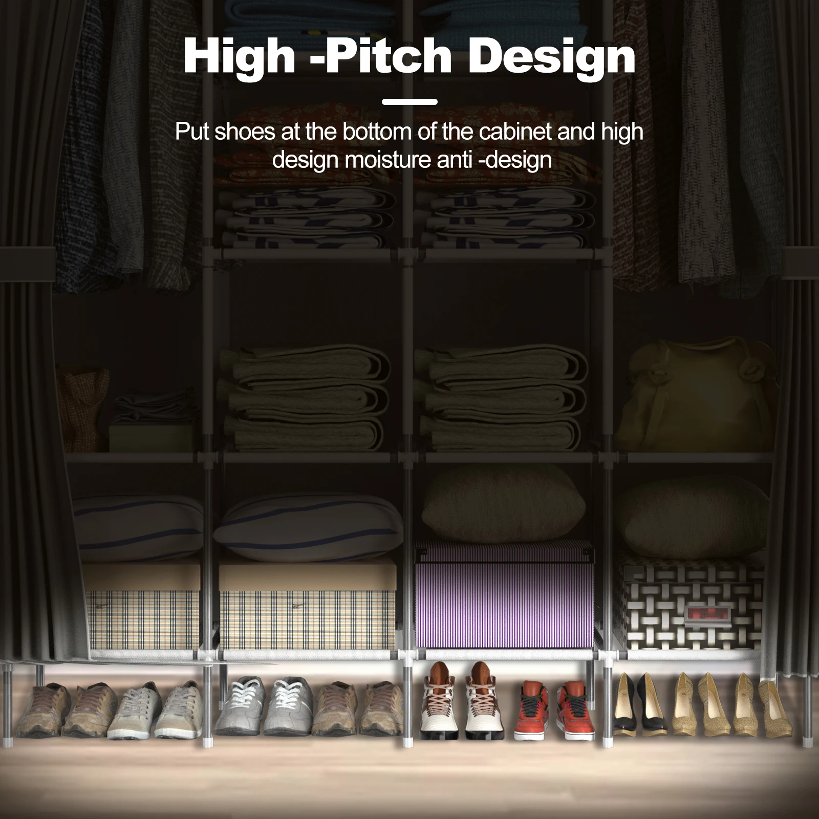 Enhanced Durability:Â Built with a 16mm diameter tube, this wardrobe provides superior load-bearing capacity. Its high-strength, powder-coated steel frame, paired with reinforced plastic connectors, ensures greater stability compared to similar models.
