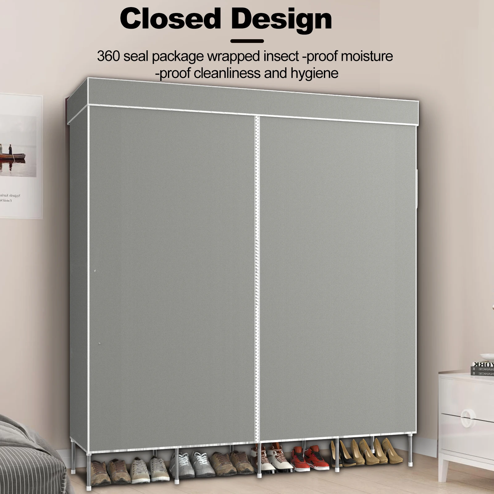 Easy Installation:Â The wardrobe comes with detailed instructions for quick, tool-free assembly. The heavy-duty, non-woven canvas cover includes an anti-rip coating and a convenient rear zip for easy fitting.