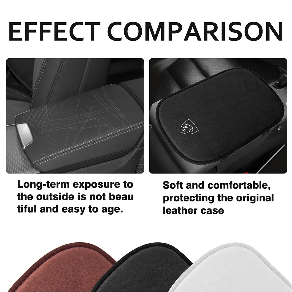 Protects car armrest box from damage, spills, scuffs and dirt.