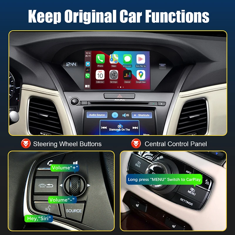 Your current system may still have all of its original features and have full CarPlay functioning thanks to this amazing solution.Incorporated with the USB console or glove box, the CarPlay system provides steering wheel and button control.