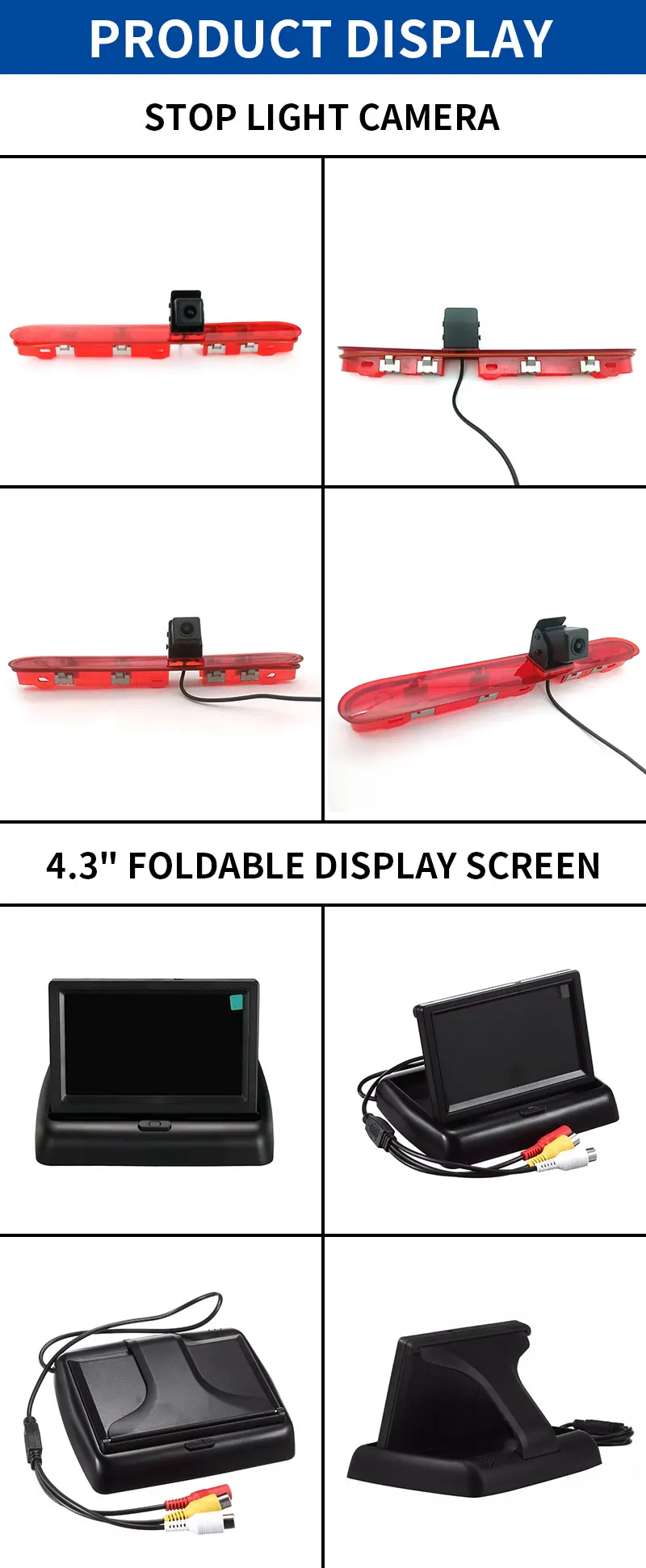 Description Report Item Car Brake Light Camera For Peugeot Expert Van For Citroen Dispatch For Toyota Proace Van 2016-2019 with 4.3 Inch Display Screen Camera Feature: 1. Condition: Sony lens, six-layer lens,100% products and high quality 2. hard-resistant function, strong blowing 3. Easy installation and simple operation 4. High definition camera reading, high definition and wide viewing angles 5. Ensure safe driving to avoid accidents on vehicles 6. Stable performance, low power consumption, low noise,HD camera, smart adjustment, night vision effect Display screen Features: With 2-way video input port, white video cable connects to the rear view camera of the car, yellow video cable connects to DVD or VCD. When reversing the car, the screen automatically switches to the picture of reversing. Foldable and portable, easy to install and use No menu button, the factory set has been set the best picture, easier to use. 4.3-inch LCD high-definition digital folding desktop Universal monitor camera reversing rear view display 12V. package: 1 x Stop light camera 1 x 4.3 inch display screen 1 x 10M power supply cable 1 x use manual Specifications View Angle 170° Guiding Line Yes Lens Material Plastic + Glass Length of Video Cable 10M Shell Material plastic Material Type Abs Customer Reviews Due to our system upgrades, this content is currently unavailable in your region.