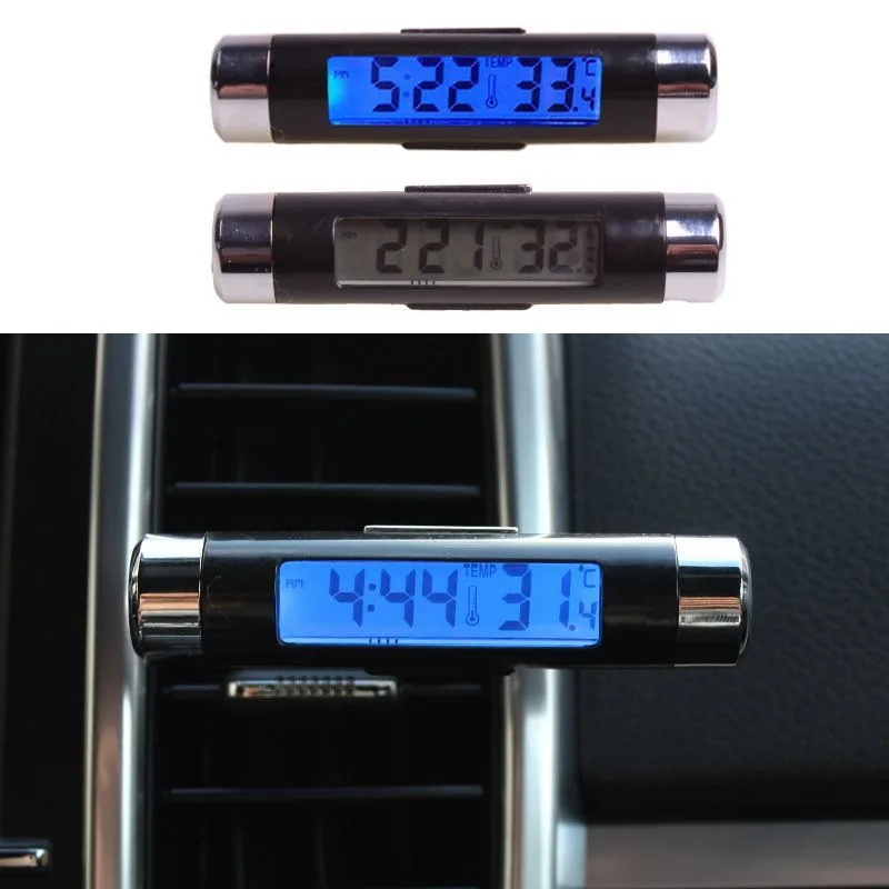Features: Car clock thermometer. Clock, temperature display function, with backlight: The backlight has a button that lights up for about 5 seconds when pressed, and is equipped with a clip that can clamp the air conditioning vent/sun visor for easy installation.