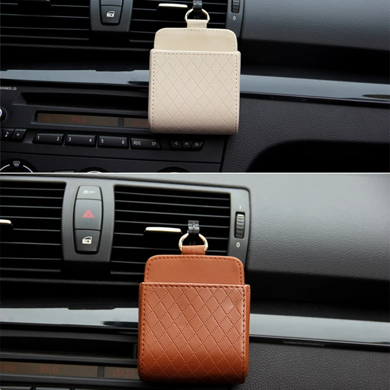 Car Storage Bag Air Vent Dashboard Tidy Hanging Leather Organizer Box Glasses Phone Holder Storage Organizer Car Accessories