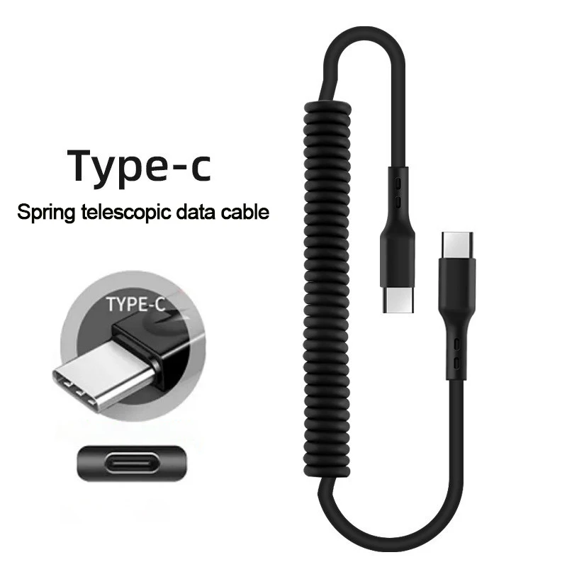 Car USB Type C/Type C to Type C/USB LIGHTNING Fast Charging Spring Telescopic Cable For iPhone 16 15 14 Samsung Xiaomi OnePlus