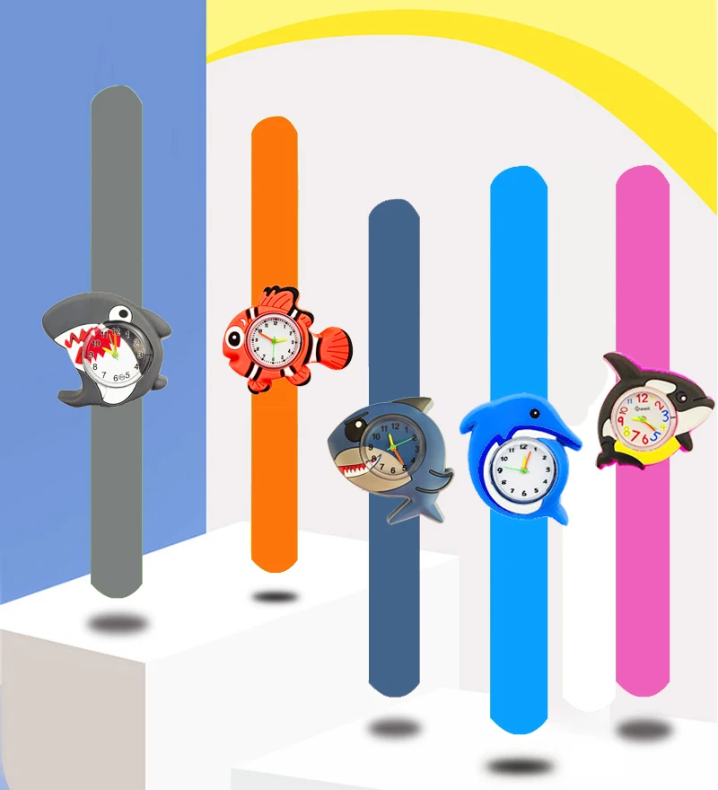 Cartoon Dolphins Sharks Children Watches Baby Learn Time Puzzle Toy Bracelet 3D Crocodile Crab Kids Digital Electronics Watch