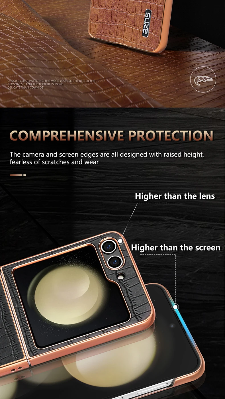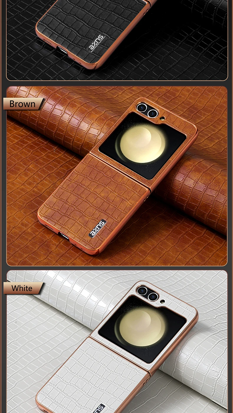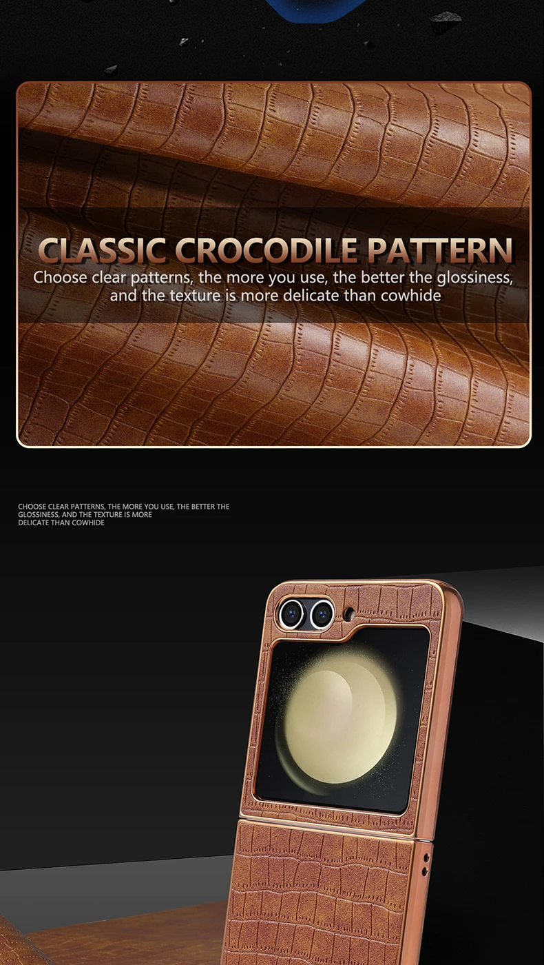 Case For Samsung Galaxy Z Flip 7 FE Z Flip 7 6 5 4 3 Phone Case Crocodile Skin Series Flip Cover For Samsung W25 W24 Phone Cover