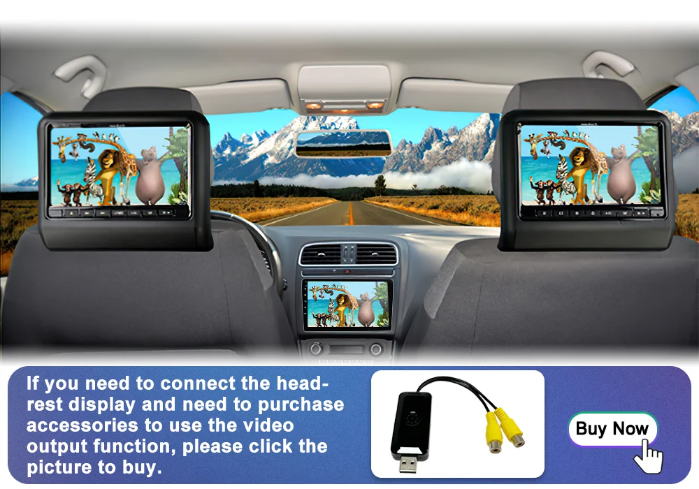 If you need to connect to the headrest display (you can buy other USB video adapters). Through this function, you and your family and friends can enjoy a visual feast on the car.Just say the command word and the "Voice Assistant" will do the work for you, for example, turn on navigation, turn on music, play video… and many more fixed commands to make your driving easier and safer.