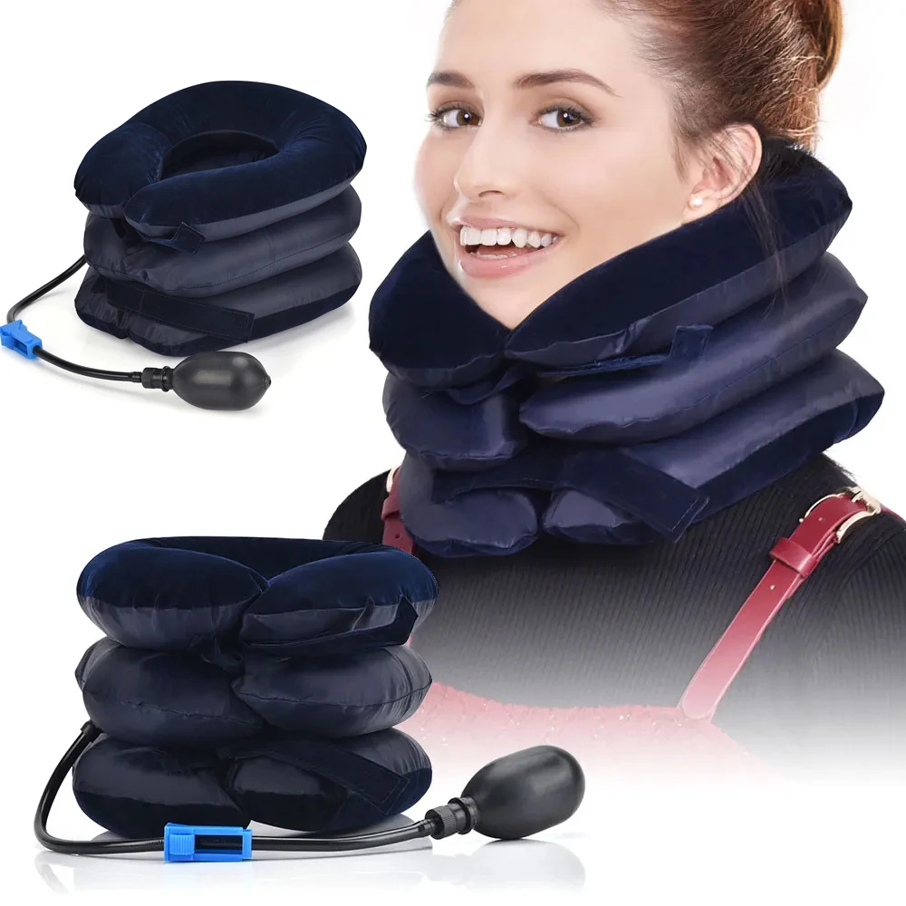 * This traction device supports the neck, while elevating the jawbone. This creates optimal spine alignment, which relieves tension in your nerves. Many people experience back, spine and shoulder pain relief and spasm relief.