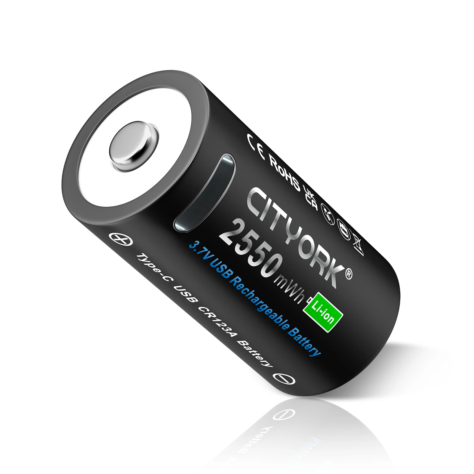 CITYORK 3.7V 16340 16350 Rechargeable Battery USB Rechargeable RCR123 CR123 CR123A Btteries For LED Flashlight With USB Cable