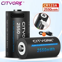CITYORK CR123A Battery 2550mWh 3.7V Rechargeable 16350 16340 Batteries For LED Flashlight 16350 RCR123 Battery+USB Type-c Cable