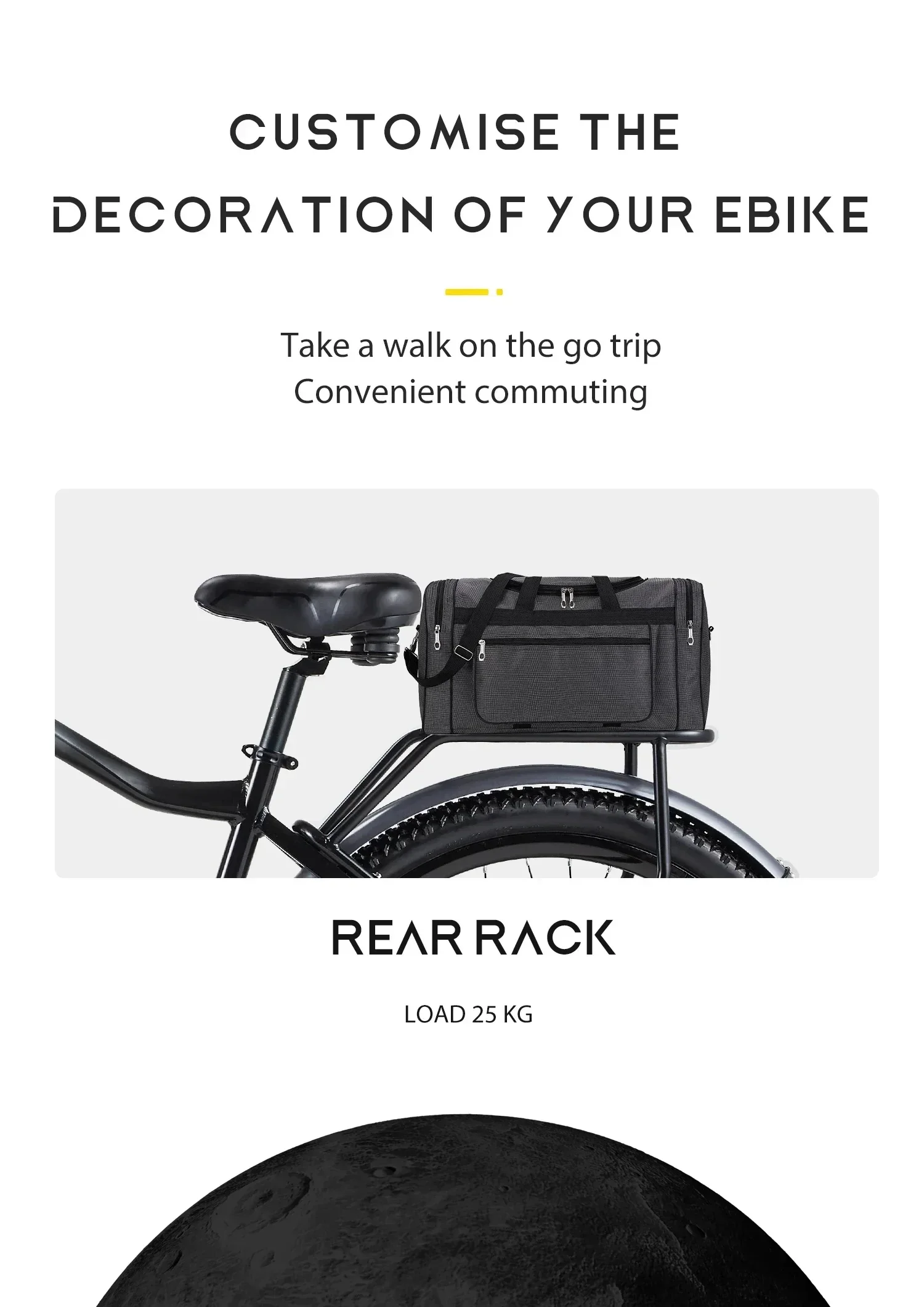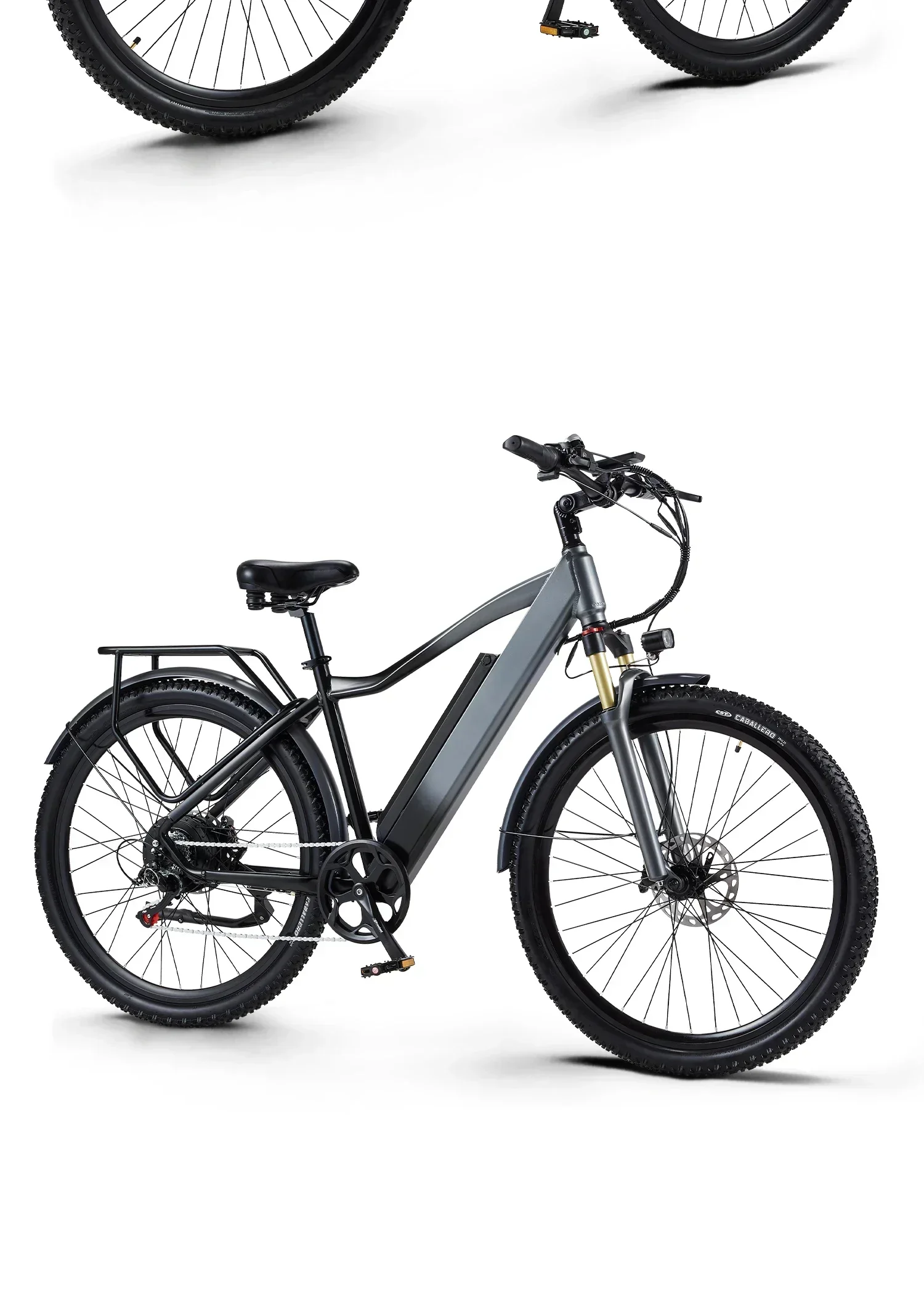 F26 Electric bicycle frame is made of 6061 aluminum alloy, weighs 30KG, and has a waterproof rating of IP65, so you don’t have to worry about rust. The gold front fork is matched with the silver-gray frame, which is very fashionable and stylish.