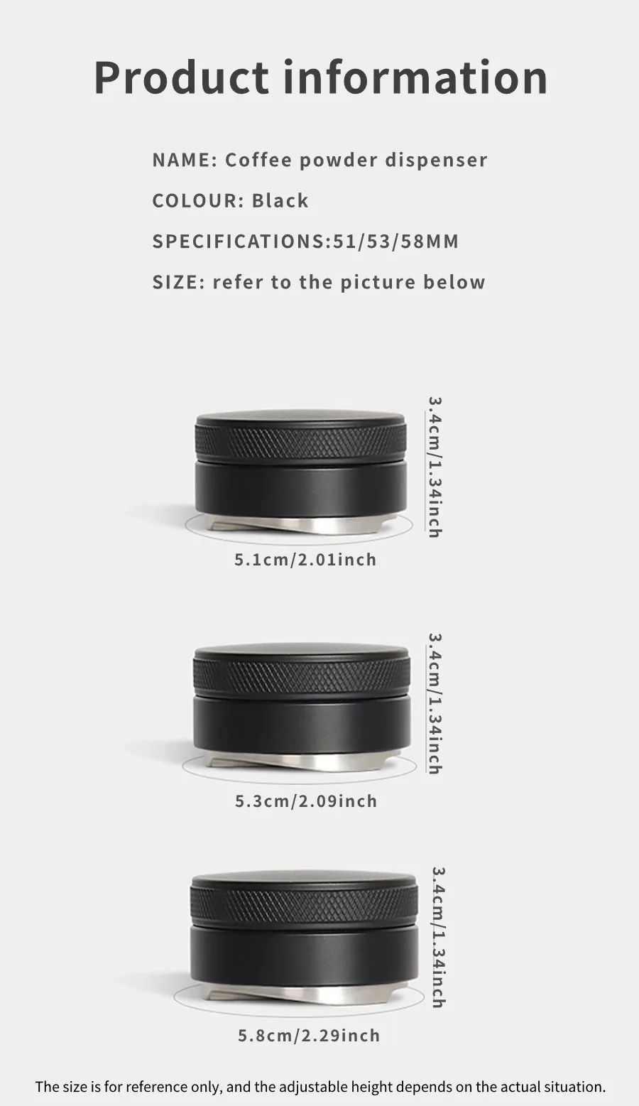 • Adjustable Palm Tamper :This coffee distributor features an adjustable palm tamper, allowing for precise control over the espresso extraction process for optimal flavor and consistency.